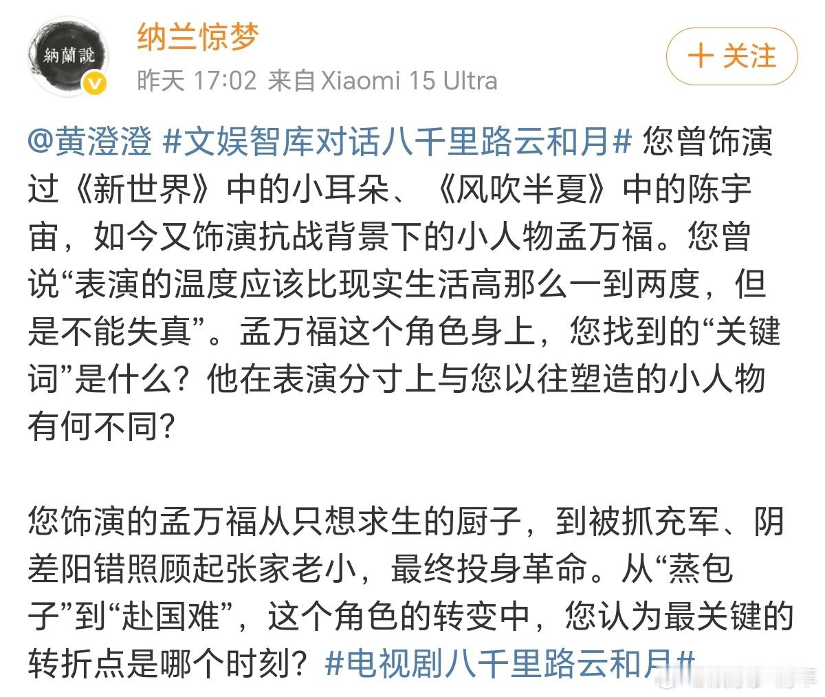 第一次见回复这么多的剧电视剧八千里路云和月 今天刷评论区发现,不管是几百字的长评还是“今天的饭配这部剧太下饭”的碎碎念,主创几乎每条都认真回复了,连我朋友的吃货留言都被翻牌了,这种接地气的互动真的太暖了。