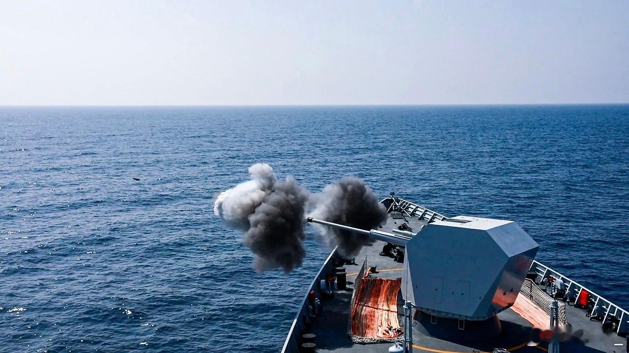 122唐山舰在亚丁湾实射130主炮