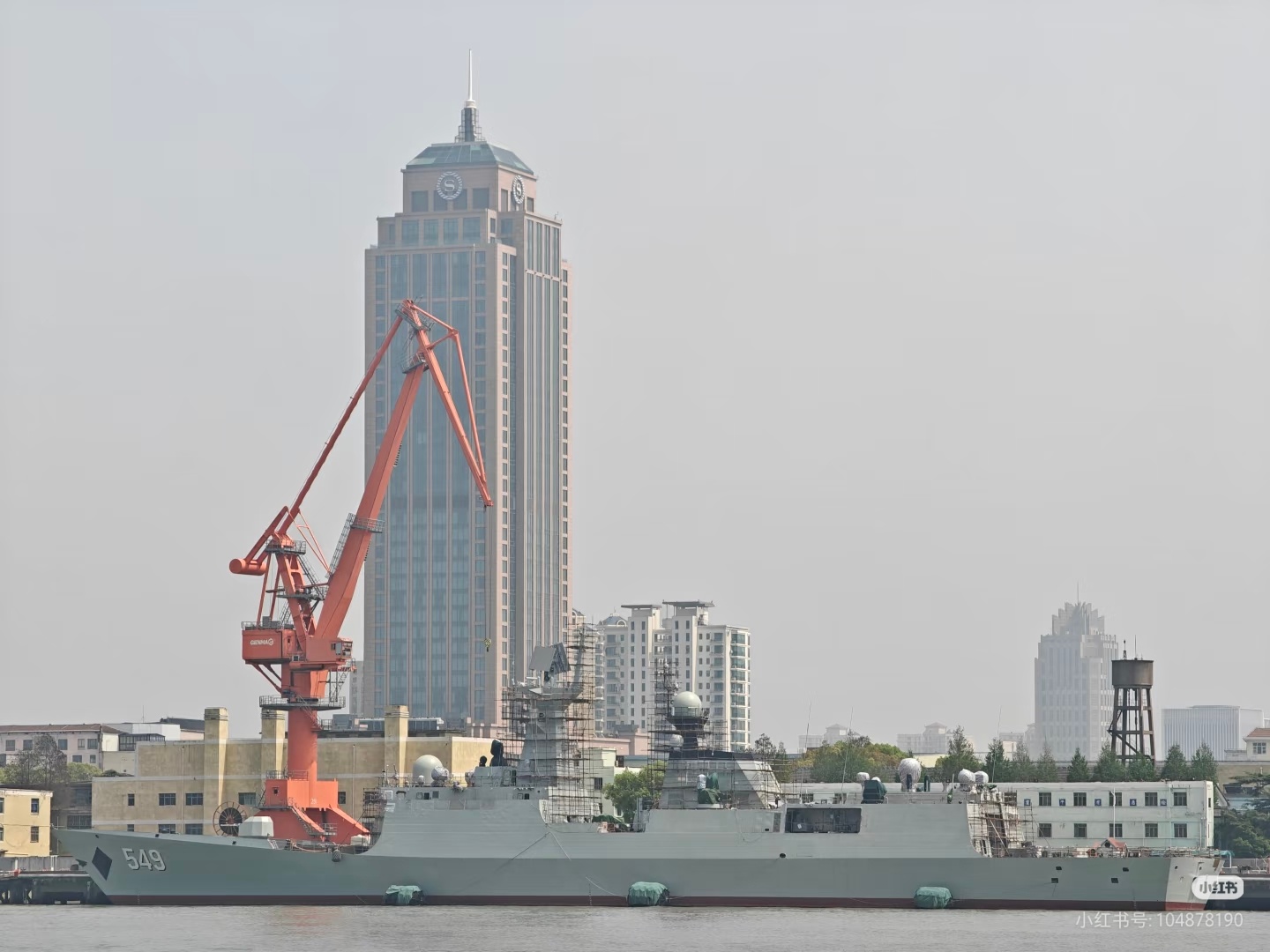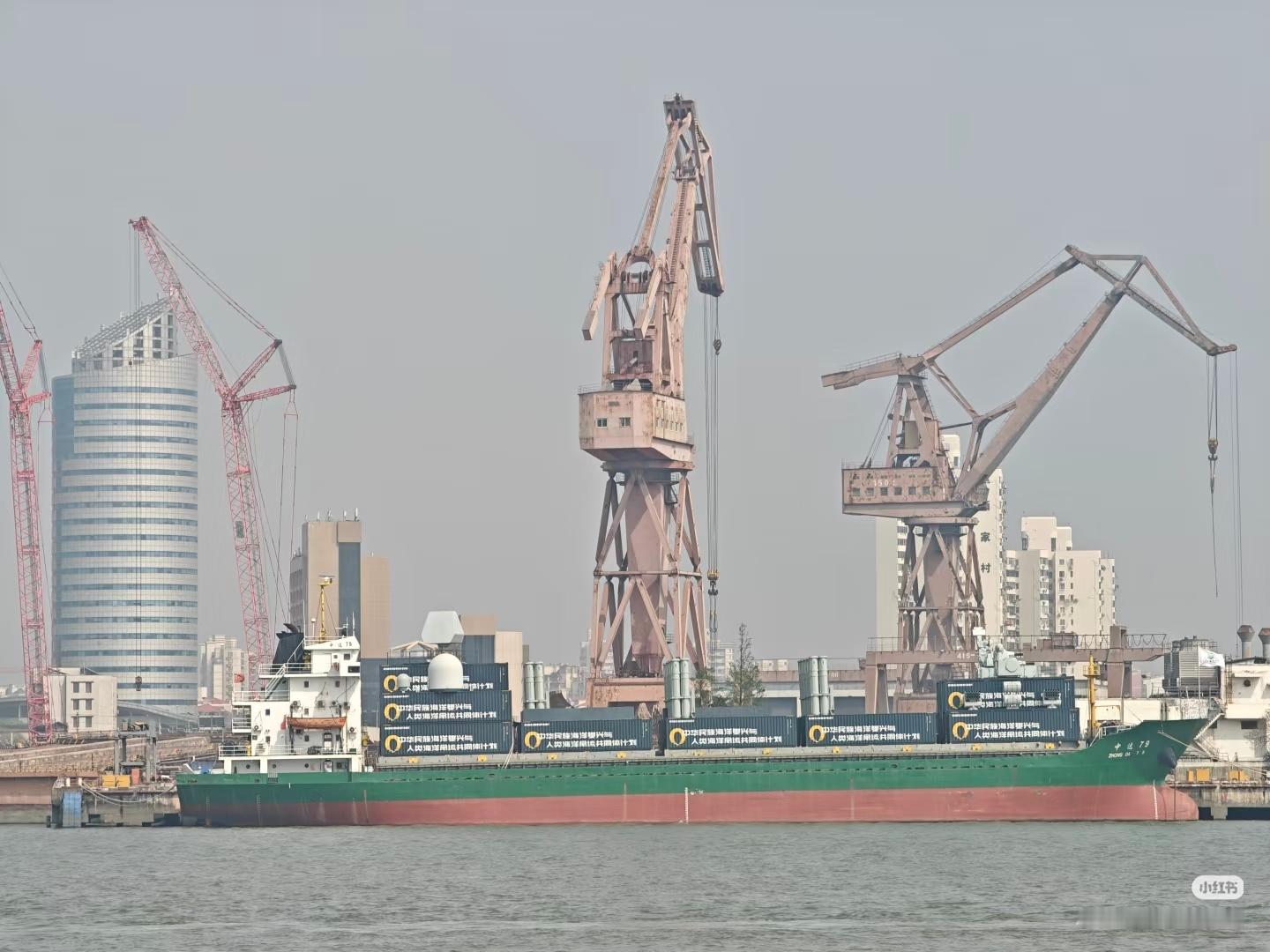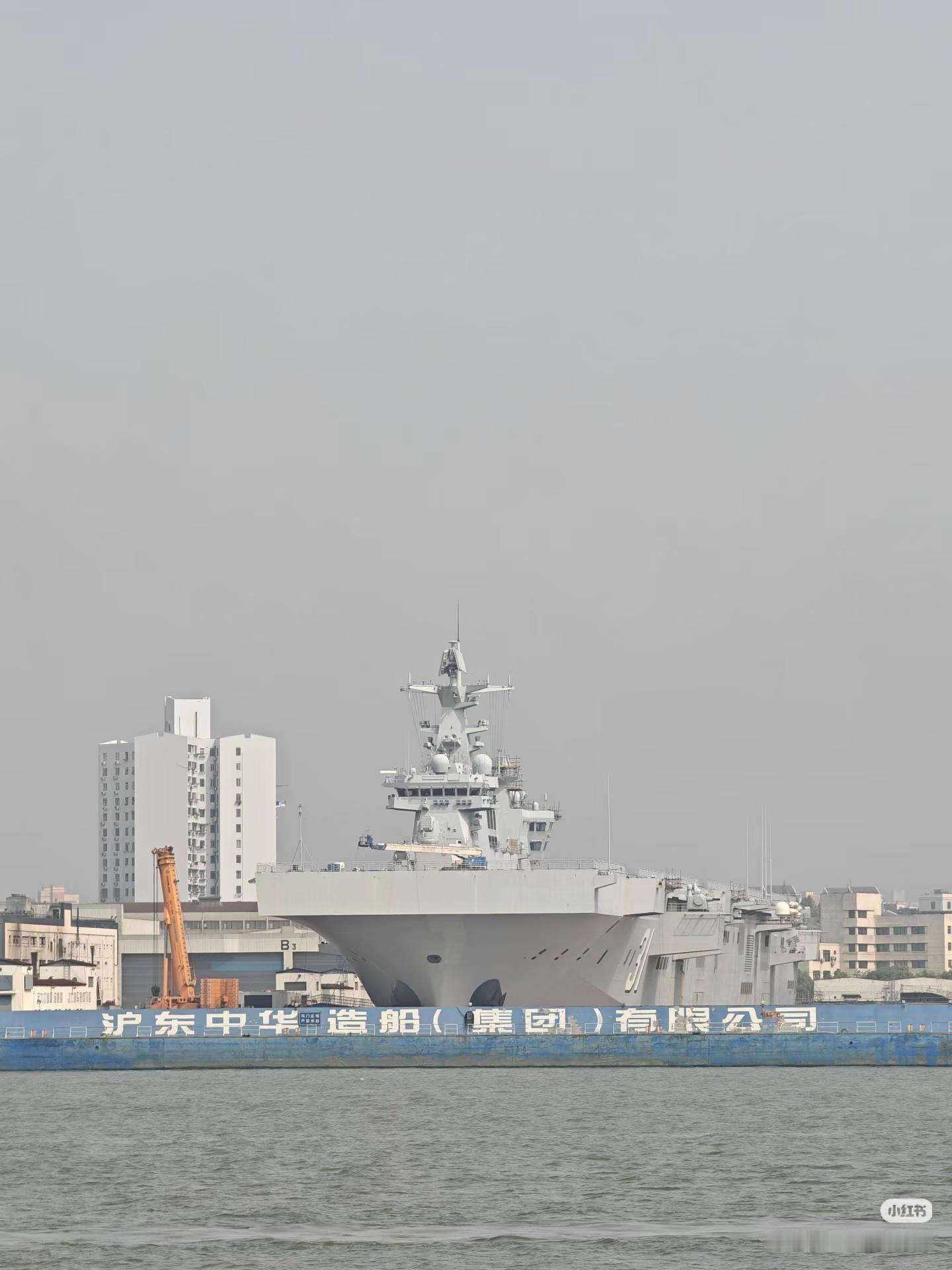 简氏称中国正建造一款大型补给舰。根据与码头长度、门式起重机及附近船体的比例,推测