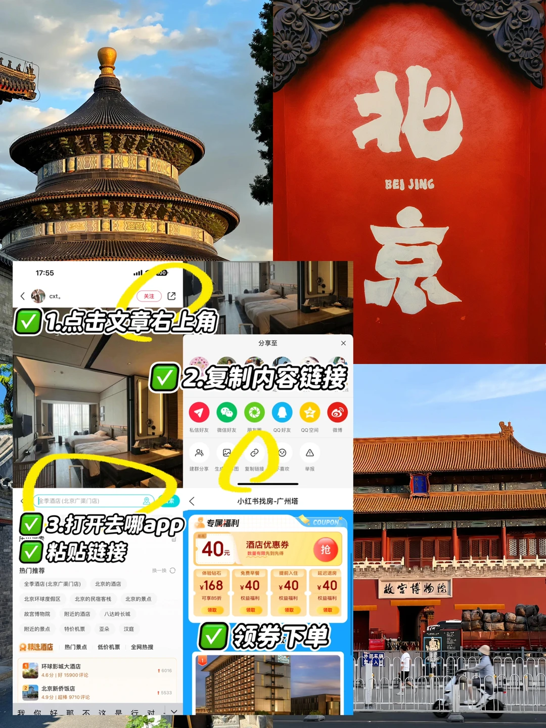 📍位置:酒店位于和平门外东街,距离天安门广场约500米,紧邻地铁站2号线前门站c口约400米 天安门入口走路5分钟左右出门,距离故宫、天坛、王府井都很近,公交车地铁方便 ,踩单车可以去到二环景点