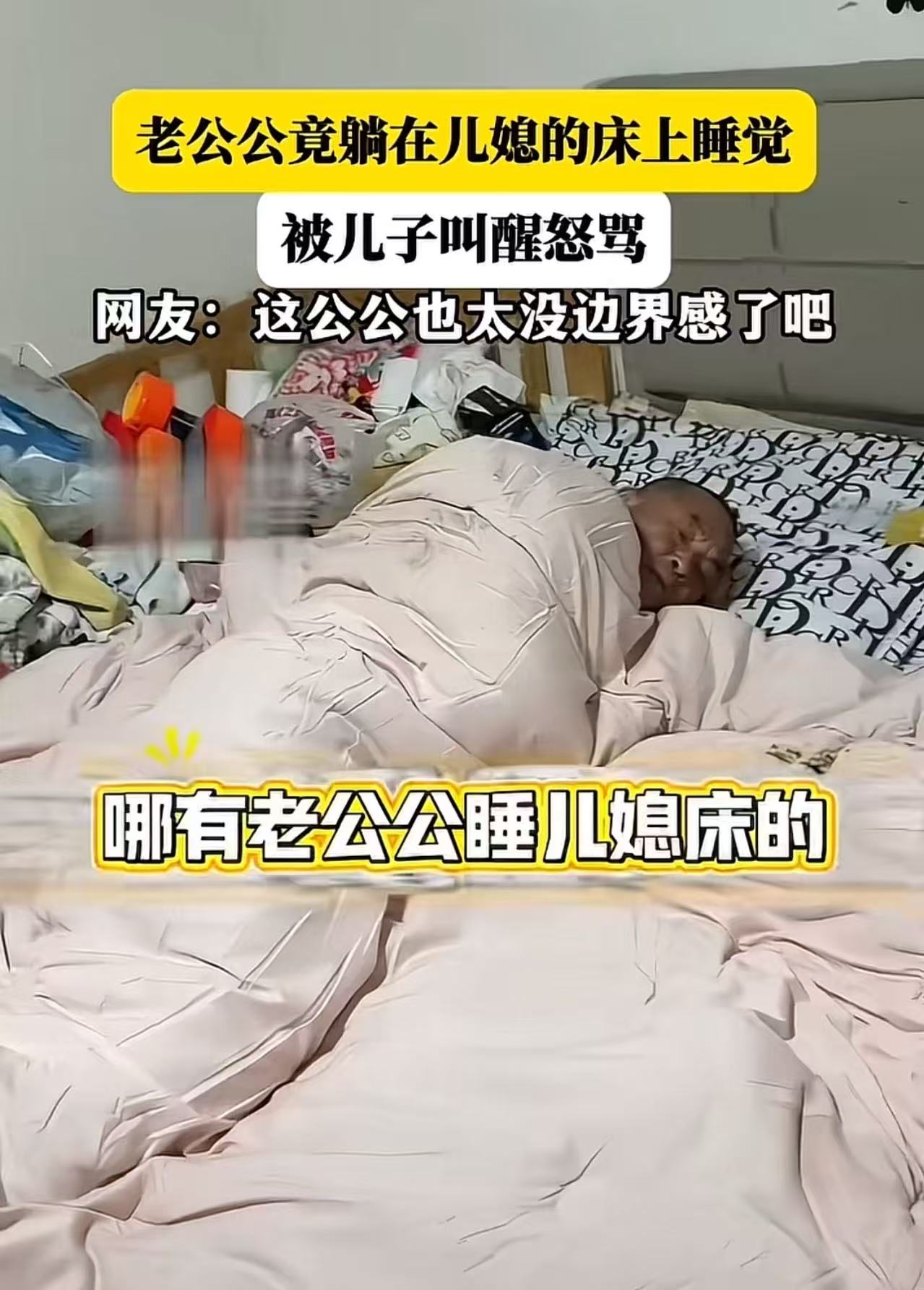 公公躺儿媳床上睡觉,被儿子怒骂:“你睡这干啥?”公公理直气壮:“这是我房子!”网