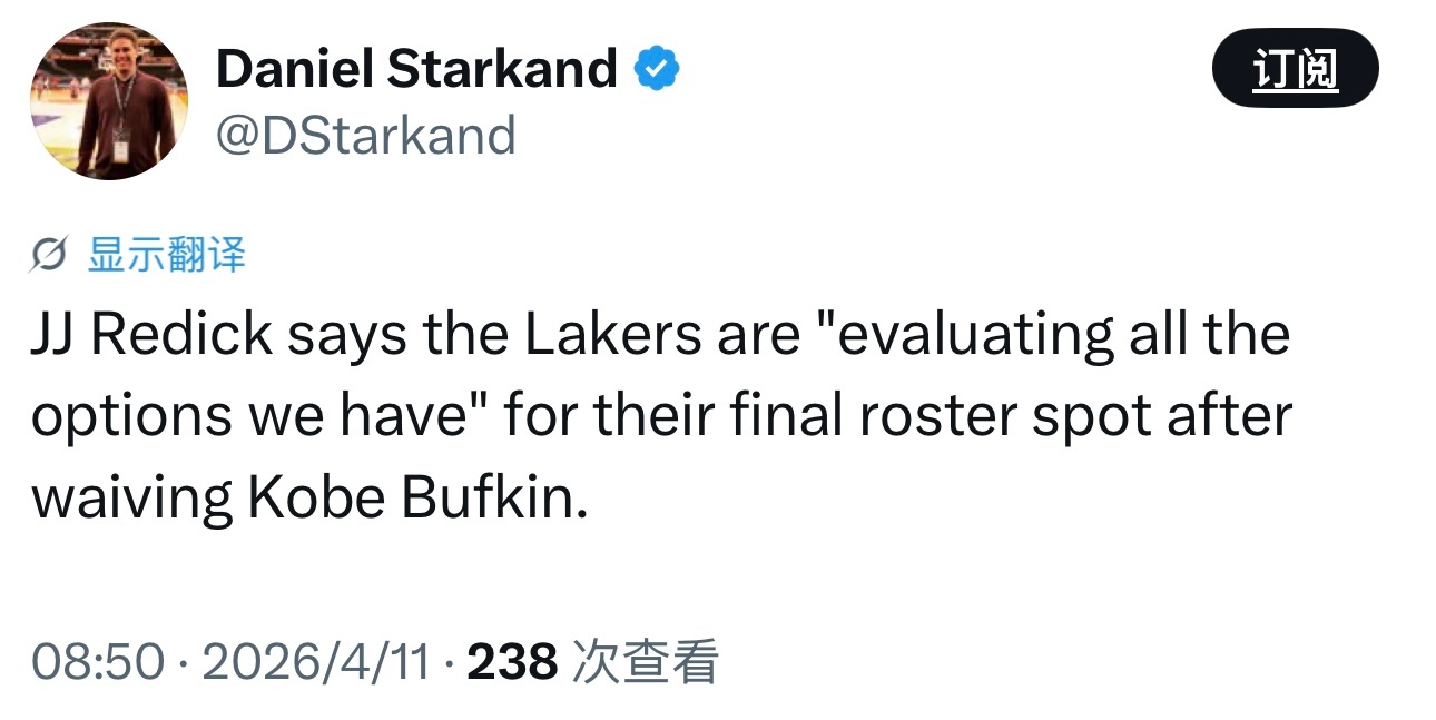湖人今天裁掉了巴夫金,雷迪克表示,我们会“评估所有可行方案”。