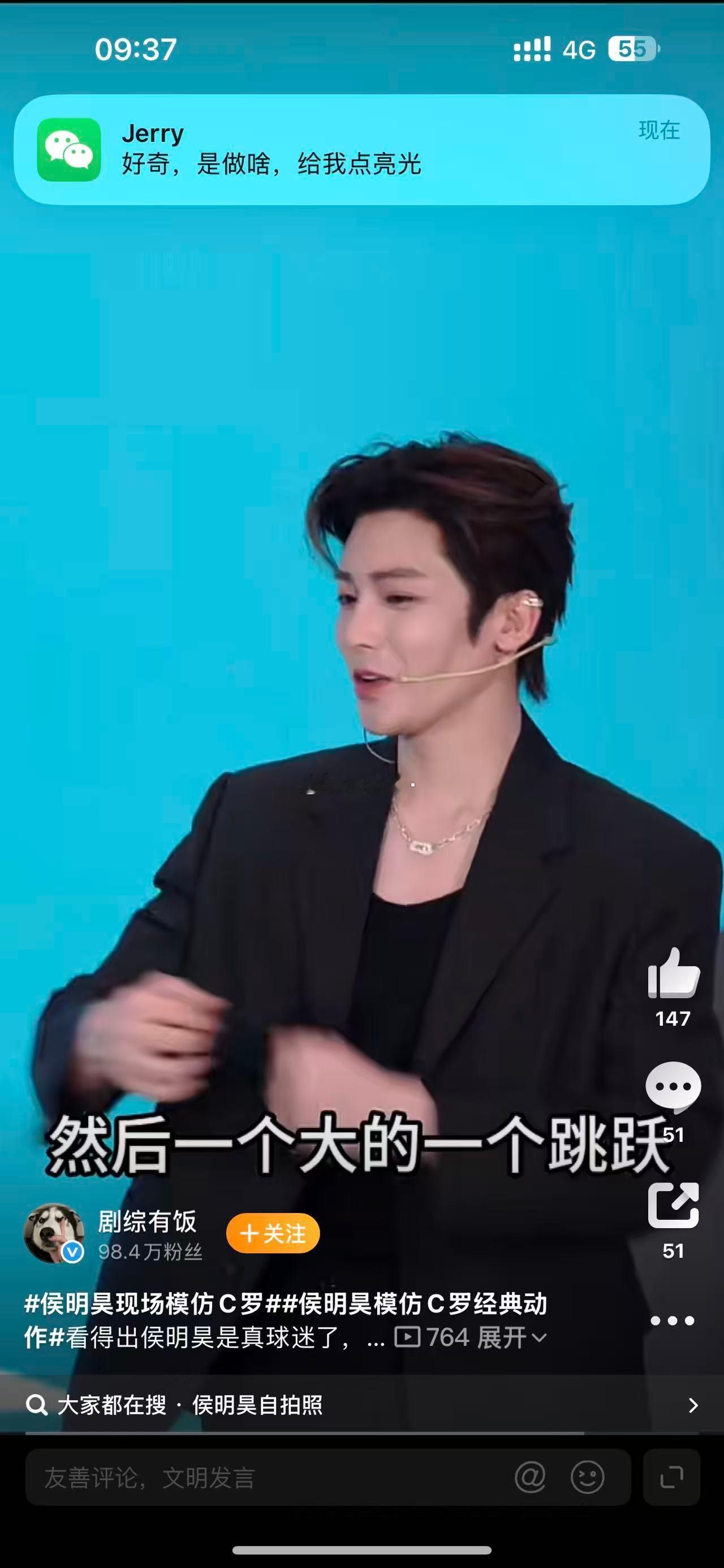 侯明昊现场模仿C罗侯明昊确实很喜欢C罗的感觉,偶像来着 侯明昊分享看球装备