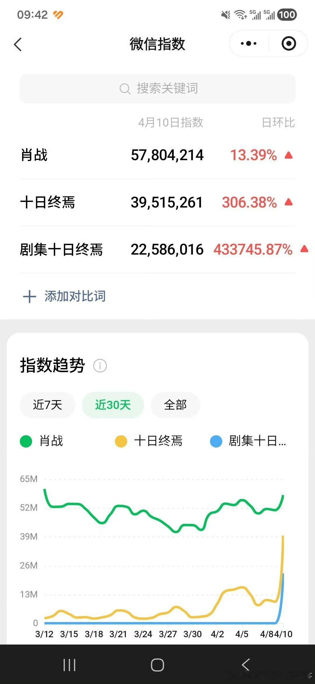 十日终焉昨日官宣开机:百值:肖战百指4.6w+,十日终焉百值2.2w+微指:肖战5780w,十日终焉3951w,剧集十日终焉2259w,无正式预告,腾讯站内历史最高热度1.3万万众瞩目啊