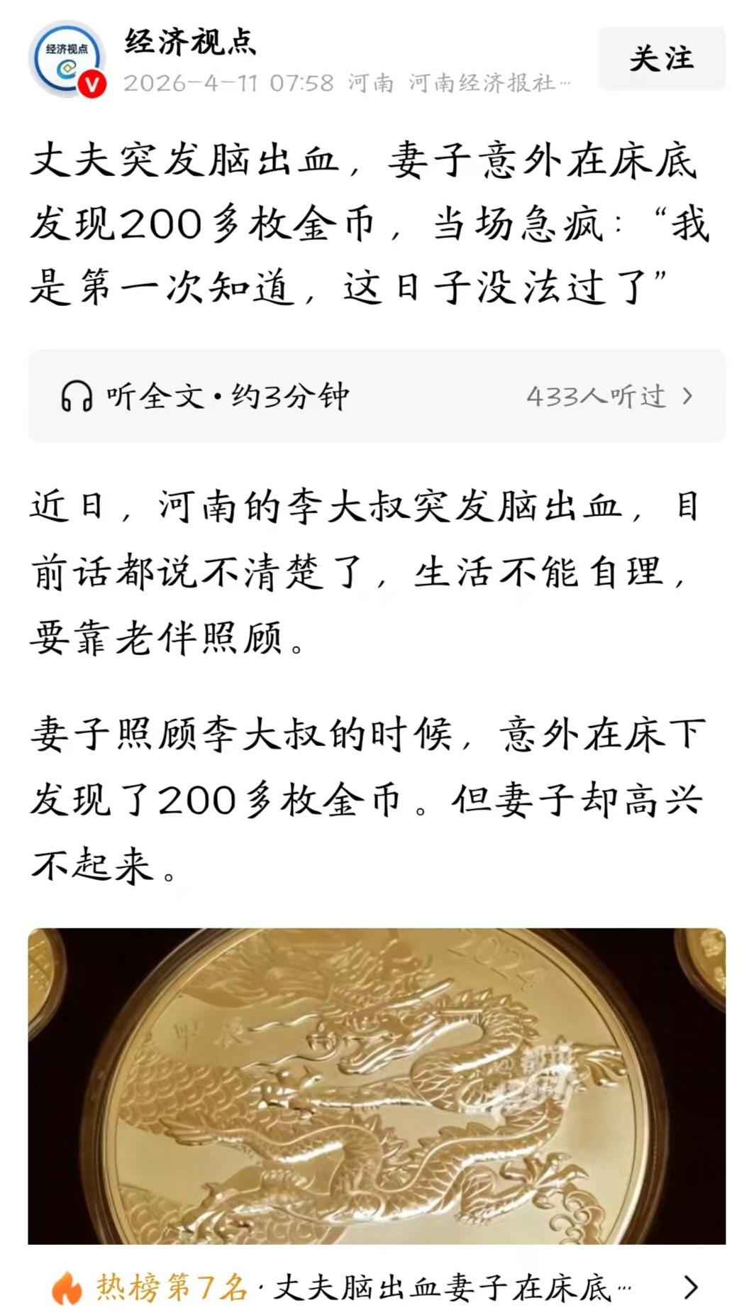 河南,大叔突发脑出血,妻子寸步不离在旁伺候,谁知,打扫卫生时,突然在床底发现了一个箱子,里面竟然装着200多枚金光闪闪的金币,最重的一个,就有2斤多,而且,全都是假货。妻子顿时傻眼,赶紧查看丈夫的购物记录,他竟然悄悄买了100多单,花了9万多元。老两口的养老钱,就被这么嚯嚯光了,妻子当场急疯,嚎啕大哭∶这日子没法过了! 李大叔家里条件本来就不好,老两口平时省吃俭用,全靠老伴一个人苦苦撑着。 可屋漏偏逢连夜雨,可前不久,李大叔突然脑出血,虽然命保住了,但话都说不利索了,吃喝拉撒全得靠老伴照顾。 老伴每天忙前忙后,心里又急又累。 那天她收拾屋子,想着给李大叔床底下擦擦灰,结果一弯腰,发现床底下塞着一堆东西。 她费劲拖出来一看,当场就懵了,里面密密麻麻堆着200多枚“金币”,还有不少纪念币、邮票,金光闪闪,看着挺唬人。 她这辈子都没见过这么多金币,有的上头写着“限量版黄金金币”,一个就有两斤重。 可老伴一点都高兴不起来,反而浑身发凉,这些东西她连听都没听过,李大叔居然偷偷藏了这么多。 她蹲在地上盯着这堆东西直掉眼泪,嘴里念叨着,要是真金的,咱们还能缓口气,可这要是假的,这日子可真没法过了! 越想越心慌,老伴干脆找了记者过来帮忙。 记者拿起一枚标着“Au.999”的“金币”仔细看,发现底下还印着“18mg”,合着这看起来沉甸甸的金币,真金含量才0.018克,商家这是玩文字游戏坑人呢。 更让老伴着急上火的是,就这么一枚“金币”,李大叔就花了一万多块。 记者试着用钳子剪开一枚“金币”,没想到质地硬得很,费了好大劲才剪开,里面露出来的全是白色的东西,明摆着就是镀金的假货。 李大叔虽然说不出完整的话,但他含糊地表示,这些“金币”能回收、能卖大钱,可现在看来,全是骗人的鬼话。 记者赶紧翻出李大叔的购物记录一看,他前前后后在网上下了100多单,买这些东西总共花了9万多! 老伴一听到这个数字,当场就崩溃了。 她坐在地上嚎啕大哭,这点家底可是他们老两口的救命钱、养老钱啊,平时连个菜都舍不得多买,不到万不得已根本动不了,现在全被他霍霍光了,以后可怎么活。 眼下,老伴已经给平台提交了退货申请,客服说收到订单数据会尽快处理,可这钱能不能追回来,谁心里都没底。 这种骗局见太多了,都是骗老年人的,证书上写足金,底下小字又说只检测表面金,说白了就是镀金,专坑爱贪便宜不懂行的人。 除了黄金,还有假玉石,假翡翠,乱七八糟的保健品和理财软件,一点退休金全砸进去了,根本管不住,真希望国家好好管管这些骗子。 《消费者权益保护法》第五十五条规定:经营者提供商品或者服务有欺诈行为的,应当按照消费者的要求增加赔偿其受到的损失,增加赔偿的金额为消费者购买商品的价款或者接受服务的费用的三倍;增加赔偿的金额不足五百元的,为五百元 。 商家将镀金假货标注“Au.999”“限量版黄金金币”,隐瞒仅表面镀金、真金含量仅0.018克的真相。 对方虚构“可回收、能卖大钱”的承诺,以远高于成本的价格诱导李大叔购买,属于以假充真、虚假宣传的消费欺诈 。 李大叔老伴可依本条主张退货退款,并要求支付9万多元价款的三倍惩罚性赔偿。 平台作为网络交易服务商,有义务协助维权、督促商家履约,若怠于处理也需承担相应责任。 真是占小便宜吃大亏,网络世界真真假假,大家一定要擦亮眼睛,管好自己的钱袋子。
