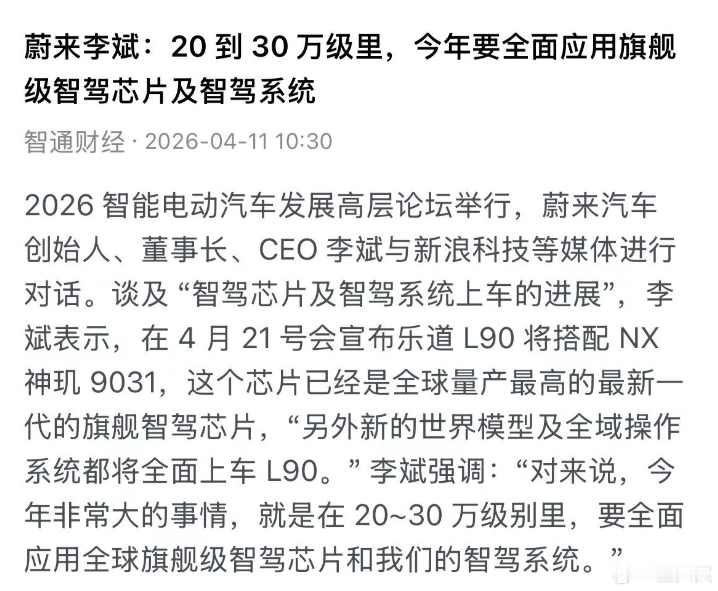 而乐道L90在这个时间点用的是NX9031,说明,乐道L90确实想多卖车,我个人甚至觉得,等到更便宜的第二颗神玑量产,乐道不会长期用这颗高端芯片。