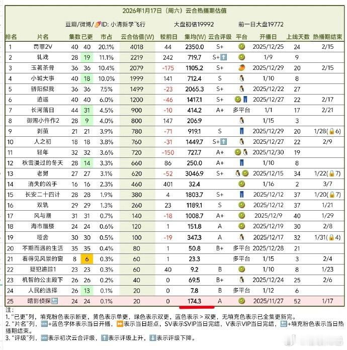 剧圈001今年一番剧播成绩纯真年代的爱情云合热播期集均2069万暗影侦探云合热播期集均174.3万