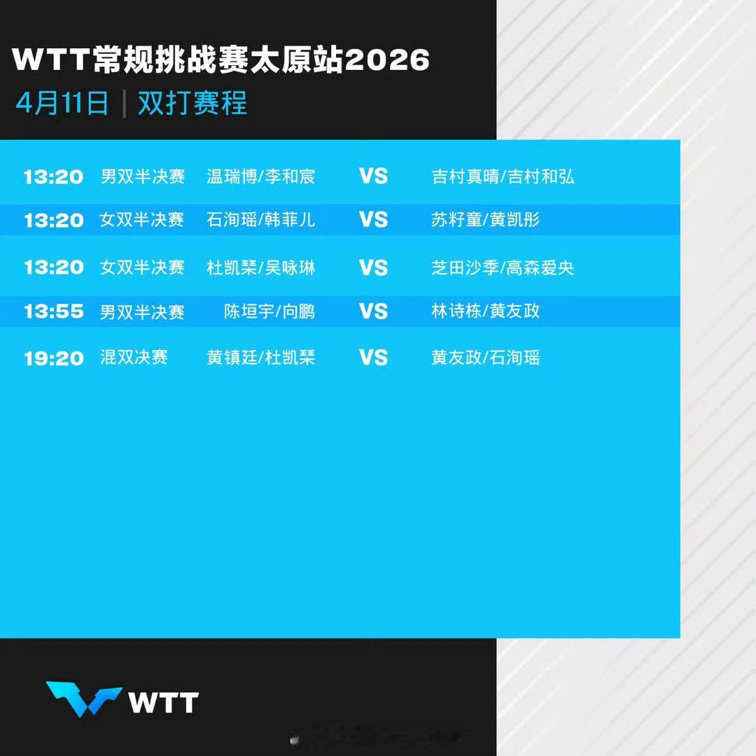 WTT太原站4月11日赛程最近还是会继续更新乒乓球的一些内容男单都是中日大战,扛