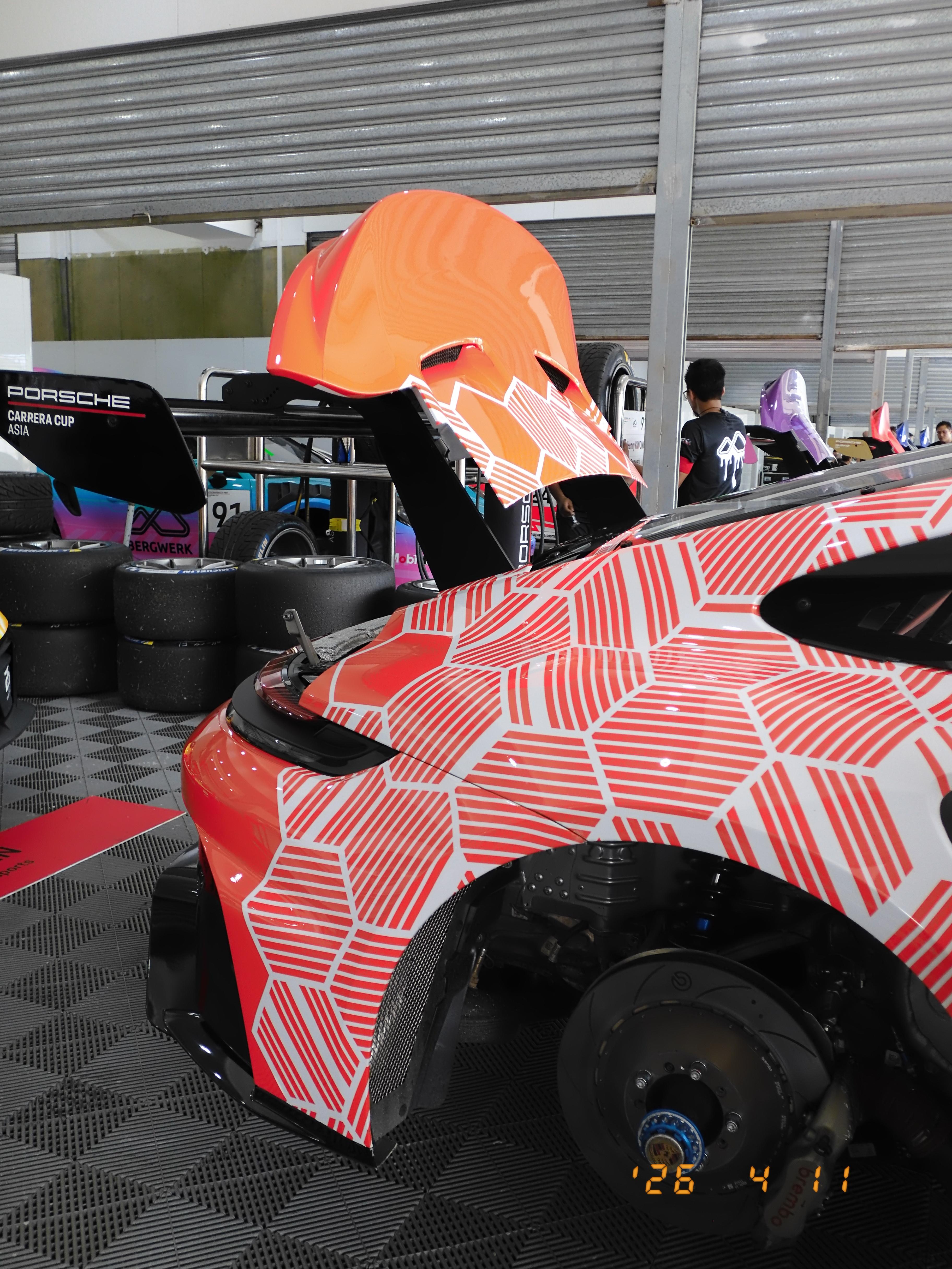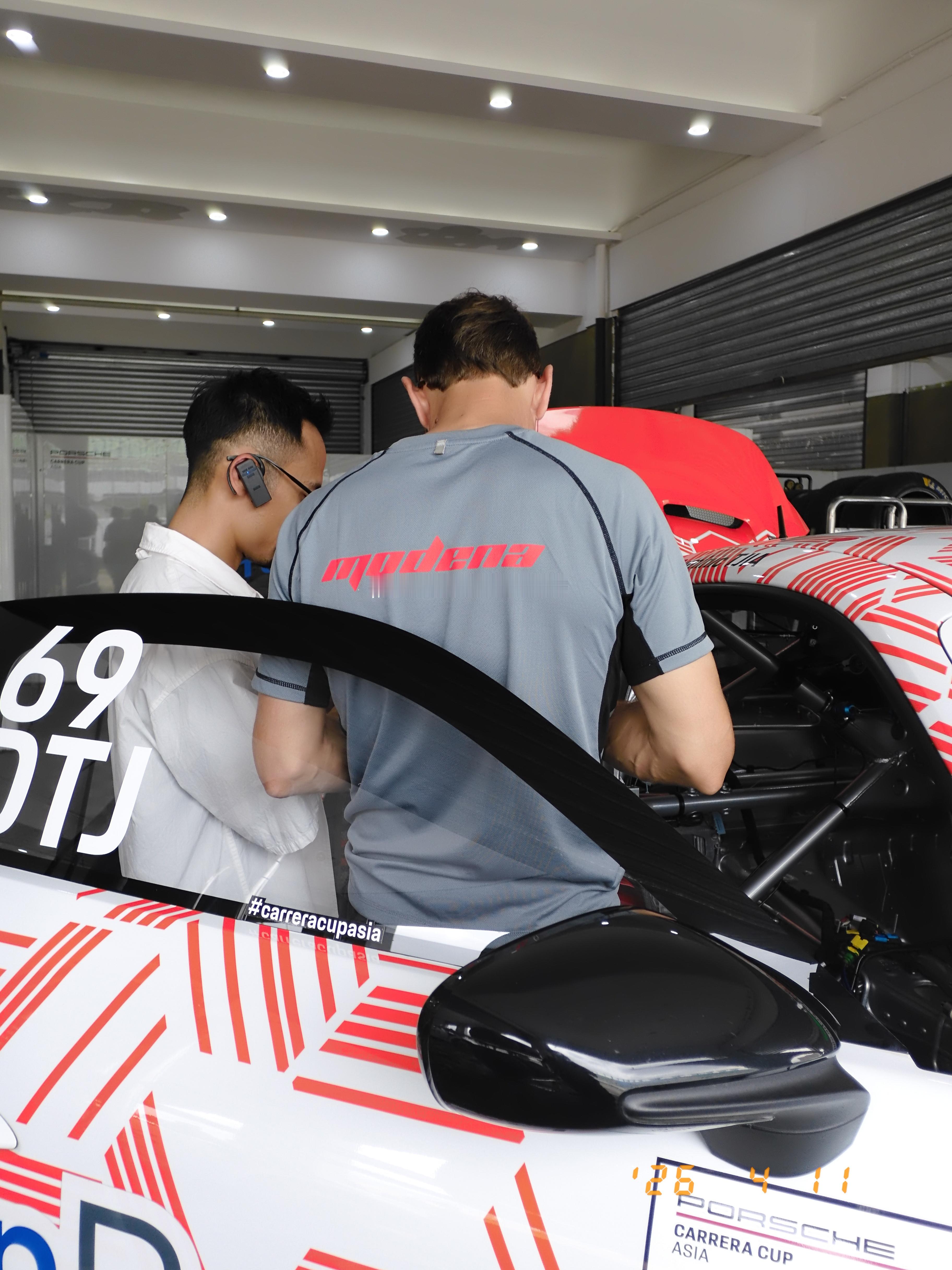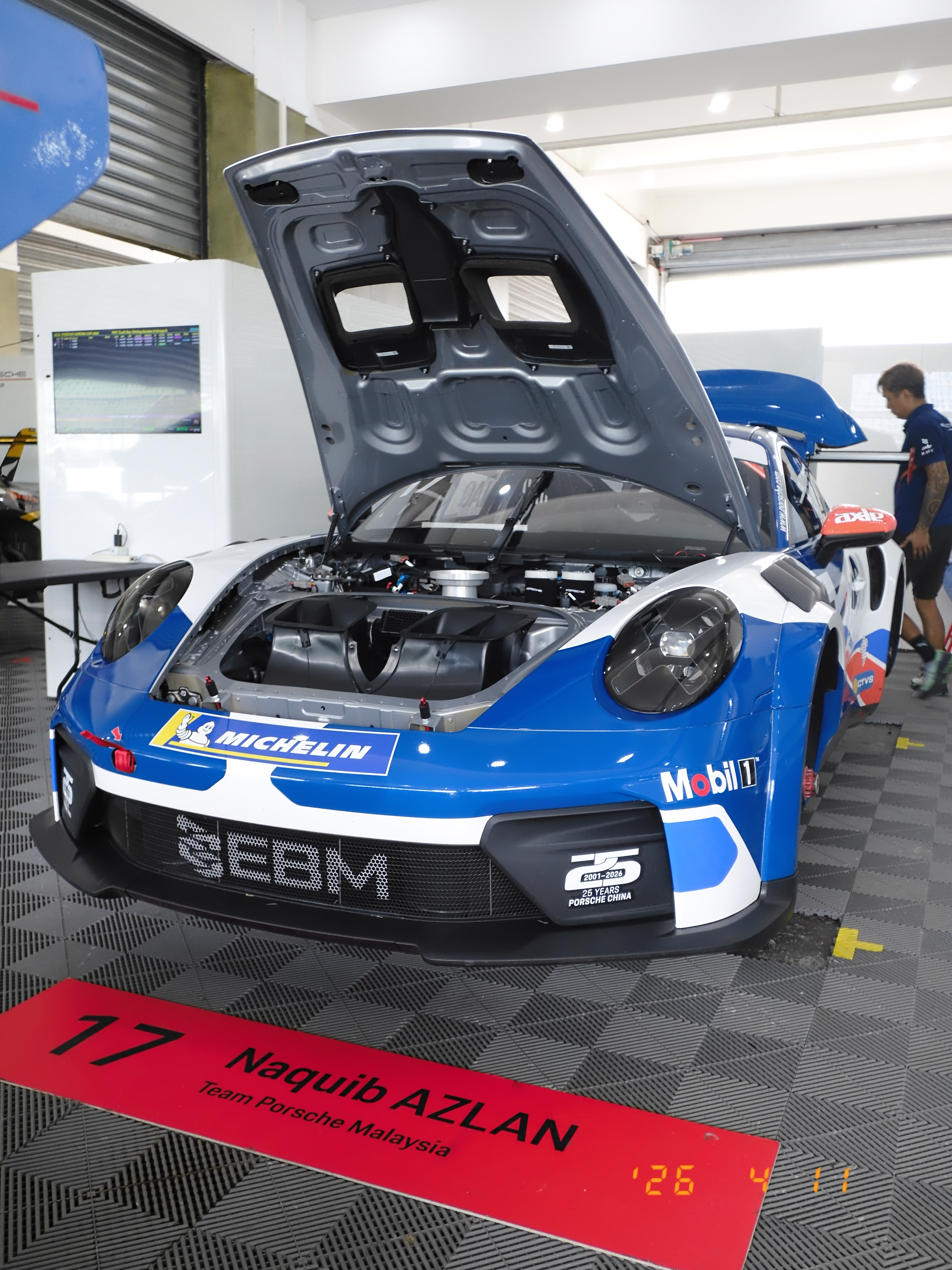 亚洲保时捷卡雷拉杯保时捷赛车运动75周年 今天圈速最快车手的车。