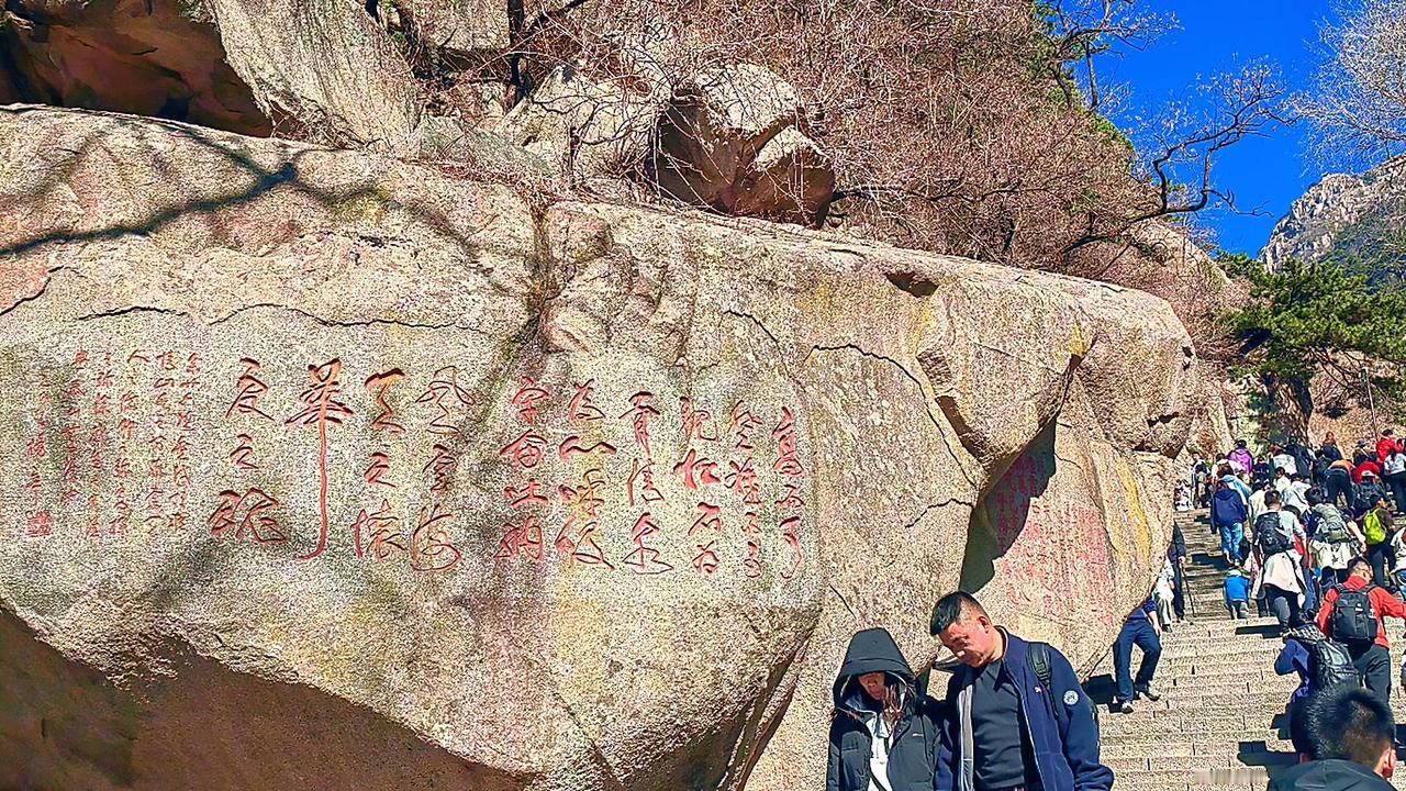 一阶一石皆是历史,一笔一划藏古今。泰山的摩崖石刻,像时光的密码,镌刻着帝王雄心与文人洒脱。抚摸被风雨侵蚀的字迹,触摸的不是沧桑,是千年不变的攀登精神。 山因刻而厚重,刻因山而不朽。在泰山之巅,突然懂了中国人刻在骨子里的“稳重”——那是历经千年风雨洗礼后,沉淀出的从容与坚韧。