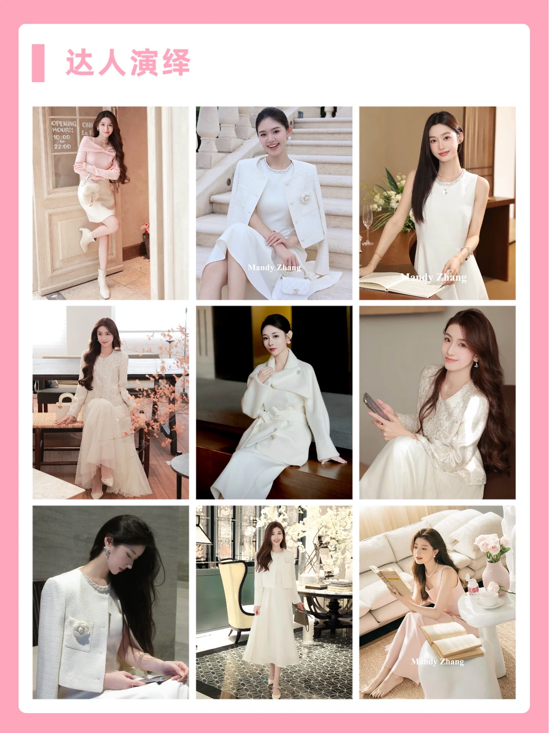 🔹 雅致日常:通勤、商务谈判、下午茶都能hold住。小香风套装不土气,钉珠点缀得刚好,从办公室直接去约会毫无压力。