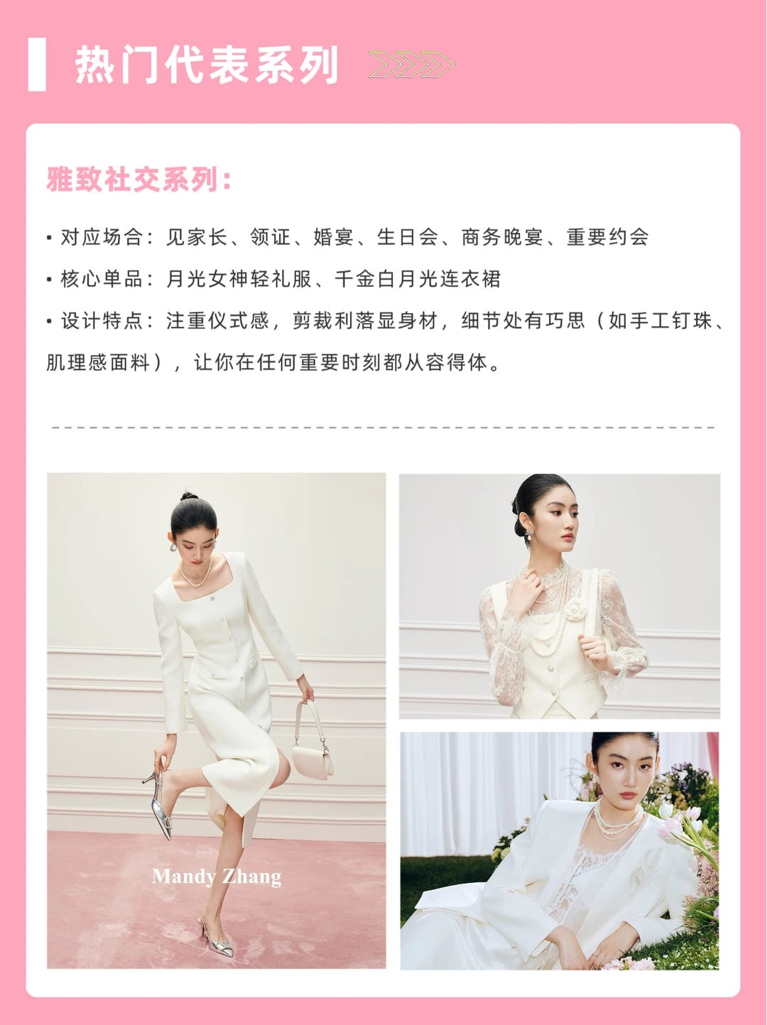 🔹 雅致社交:见家长、领证、婚宴、重要约会穿。“月光女神轻礼服”绝美,手工钉珠但不会夸张,视觉效果很得体✨