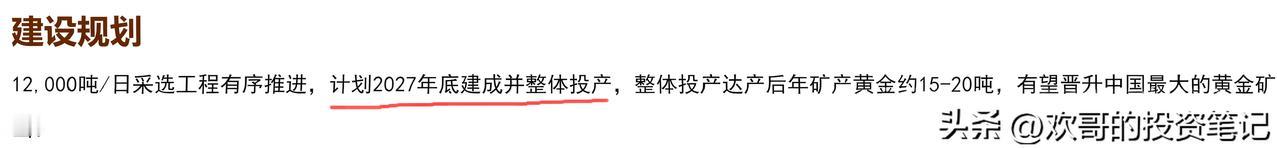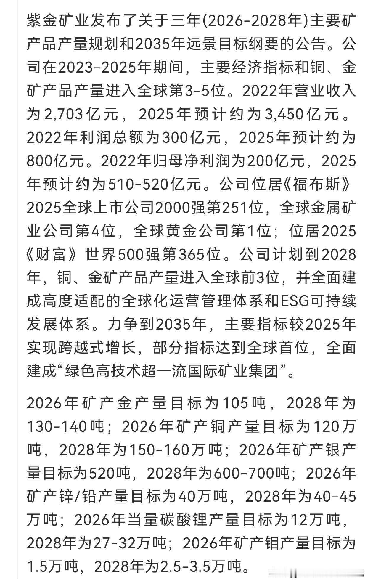 紫金矿业官网,对海域金矿的投产达产描述,改了。 最新的表述是,12000吨/日采选工程有序推进,计划2027年底建成并整体投产。投产达产后年矿产黄金约15-20吨,有望晋升中国最大的黄金矿山。 此前的说法,是计划2026年6月投产,2027年底建成达产。 2026年,紫金矿业在金、银、铜、锂上的全年矿产增量,就相当于一整个中金黄金的年产量。 未来,紫金会是年净利润破千亿的资源王者。1.5万亿到1.8万亿的市值,才是它的合理定价。 矿产资源投资的核心风险,从来不是价格波动。是矿山开采的安全性,是产能的可持续性。 现在的紫金,PE已经走到个位数。想等到30以下,概率微乎其微。 我发现一个规律:紫金矿业每一次增持,都踩在股价最低点。去年15块的位置,就是最好的印证。 今年,紫金的白银、锂、硫酸、钨矿,全要迎来爆发。这些板块,此前在业绩里几乎可以忽略不计。 看硬数据:矿产钨产量3675吨,如今钨价冲到100万一吨,翻了四倍。白银年产量520吨,锂12万吨。 一季度业绩注定炸裂。新收购的黄金矿山,还在持续带来实打实的产量增量。