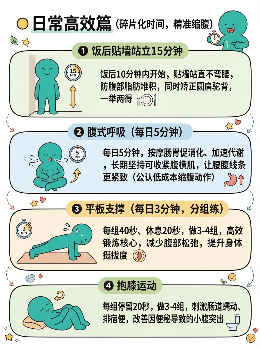 🟡 日常高效篇(碎片化时间,精准缩腹)