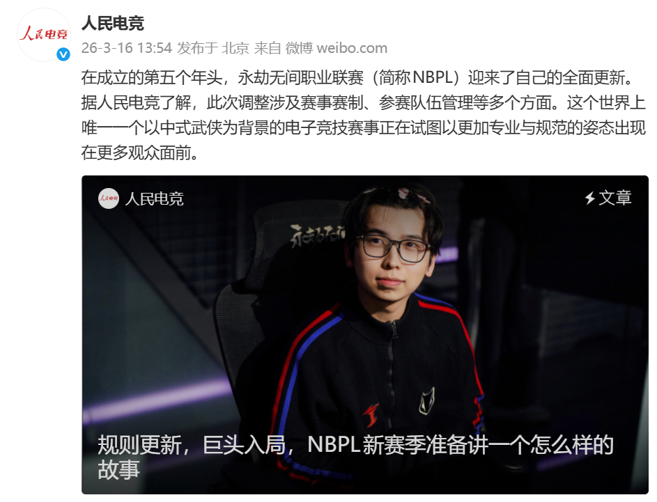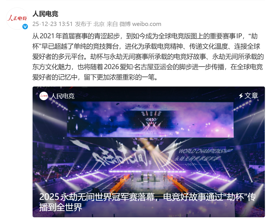 凭借深厚的本土研发底蕴与选手统治力,《永劫无间》无疑是中国电竞军团在名古屋亚运会上最有望夺金的重点项目,将以数字竞技为载体,向亚洲乃至世界展现中华武学与文化的独特魅力。#中式竞技##永劫无间入选亚运会##2026亚运会11款电竞项目官宣#