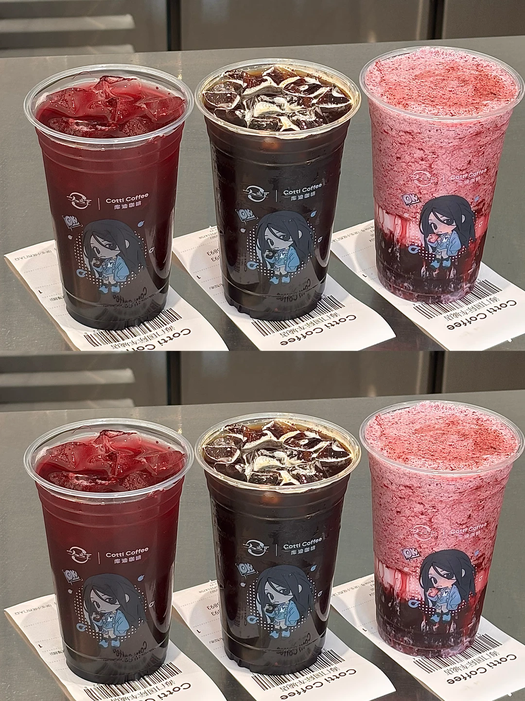 点了三杯新品也都好好喝!是库迪咖啡⾸创胶原莓果系列!