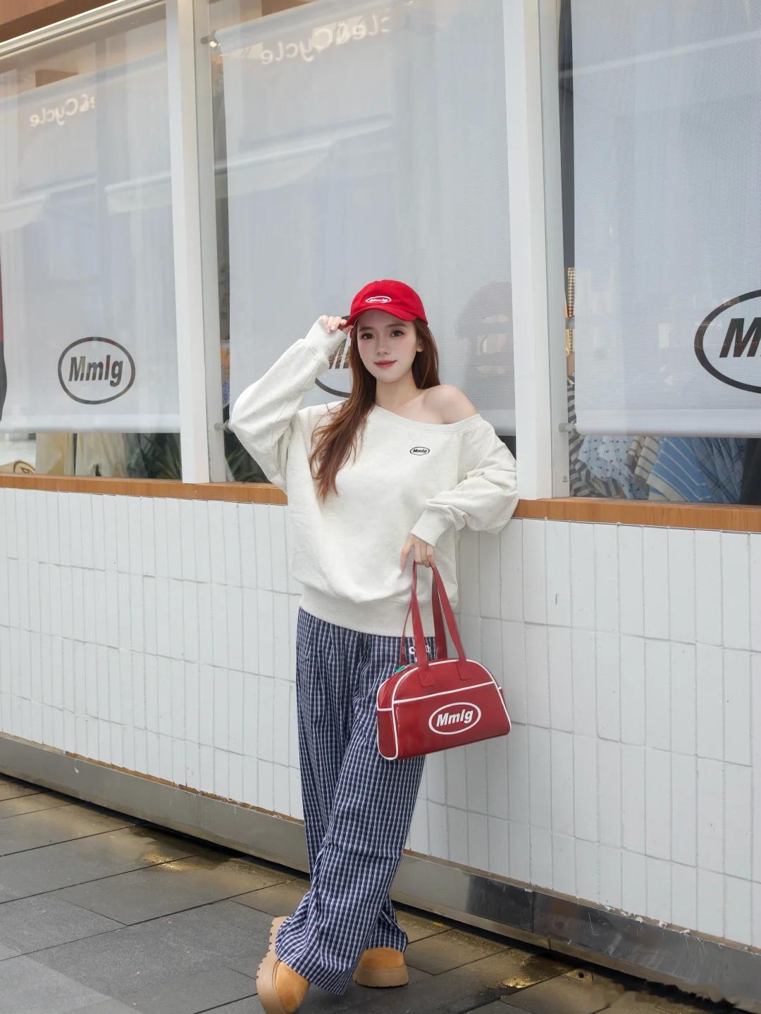 时尚ootd穿搭穿搭灵感 今日穿搭韩量100%✨分享两套韩系松弛感穿搭▫️Look1 甜妹休闲风满印小碎花连帽卫衣+同系列短裤软fufu粉色毛线帽+复古拼色保龄球包一套奶呼呼的,韩系甜妹感直接拉满,日常出街超减龄▫️Look2 松弛辣妹风一字肩露肩卫衣+蓝白格纹阔腿裤亮眼红色棒球帽+同色系波士顿包慵懒又带点小性感,韩系博主那味儿直接拿捏,显瘦又出片