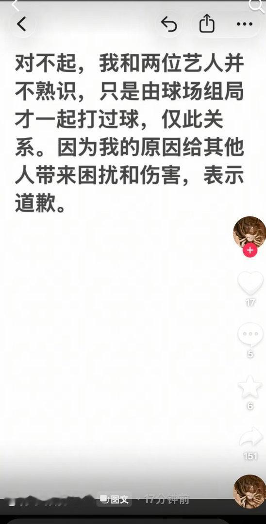 这个人给王鹤棣和何与道歉了。说并不熟识,只是一起打过球。真是无妄之灾。但是他不给虞书欣道歉吗?他真的好离谱,以一己之力伤害了三个人。