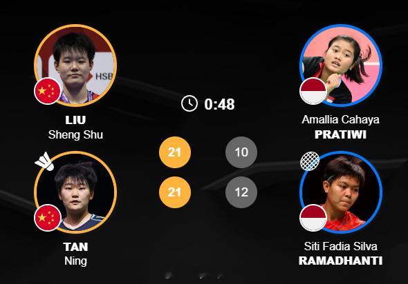 【羽毛球亚锦赛圣坛轻松晋级女双决赛 国羽提前包揽冠亚军】亚锦赛圣坛组合晋级决赛2026年羽毛球亚锦赛 4月11日宁波,羽毛球亚锦赛女双半决赛,头号种子刘圣书/谭宁直落两局以21-10/21-12完胜印尼普拉蒂维/拉马丹蒂,与队友李怡婧/罗徐敏会师决赛。
