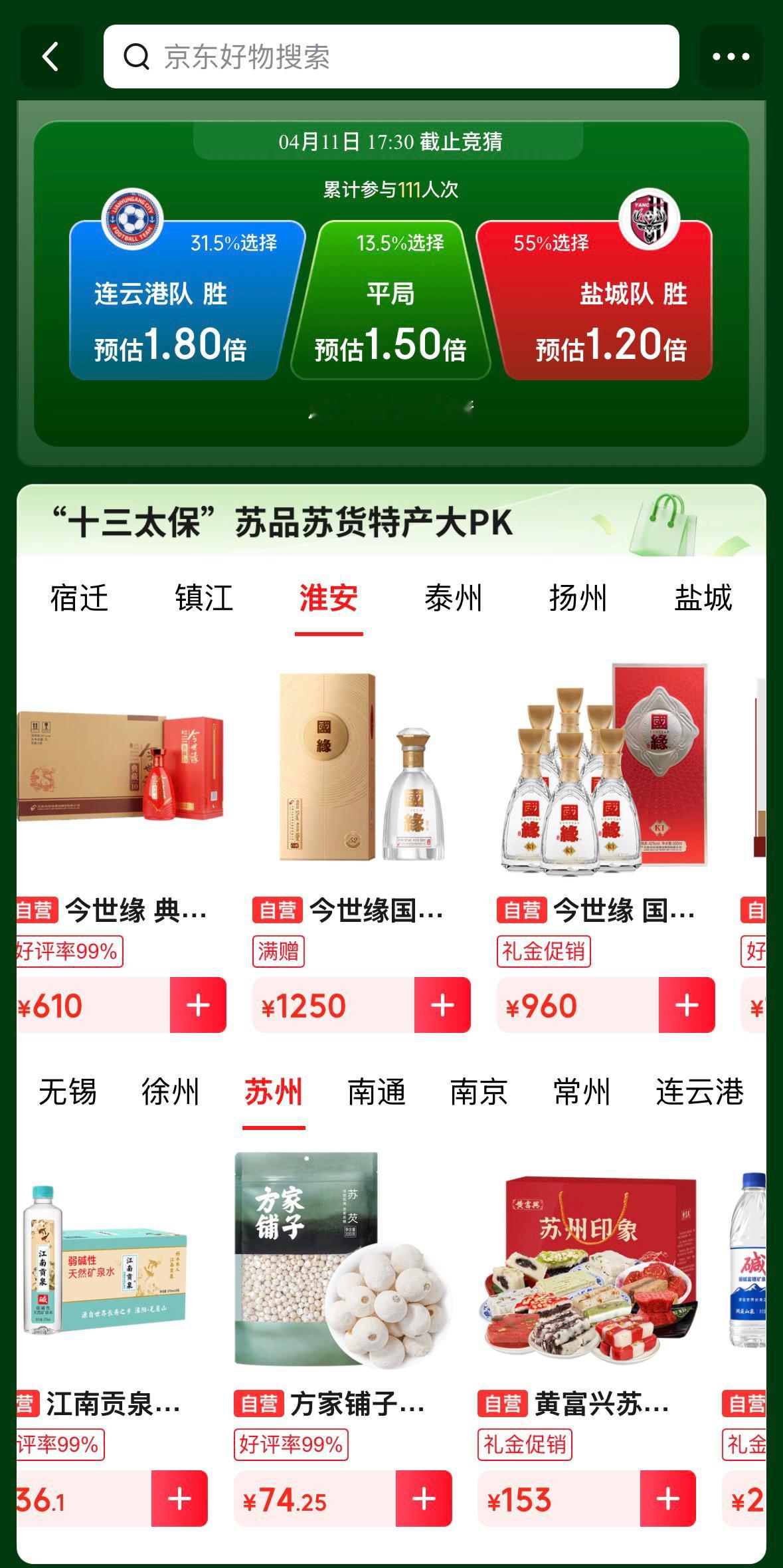 4月看球季真的燃起来了,苏超揭幕战就在今天!我发现京东格局真的大,直接给江苏十三太保全员应援,这波“一碗水端平”我给满分。我现在看球前都习惯先上京东参与猜球,5000万京豆狂撒真的不是开玩笑,赢不赢球另说,赚京豆当钱花才是正经事,特产都直接安排上了。大家直接打开京东APP搜“看苏超”就能参与,快戳【网页链接】!看球之前先上京东 看苏超赢京豆第一 比赛第十四 看苏超之前先上京东 看苏超上京东猜球赚京豆当钱花 京东助威苏超狂撒5000万京豆苏超直播苏超