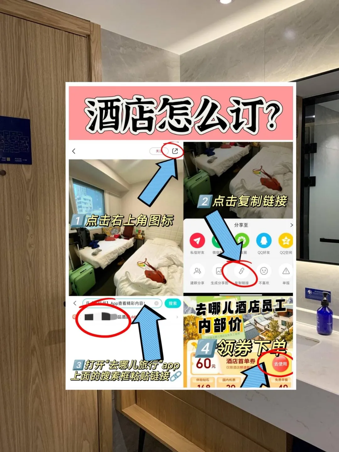 2.粘贴到app首页的搜索框搜索就可以找到了 (不会的宝宝可以在评论区问看到就回哦) ✨Ps:偷偷要到了内部员工的专属优惠券!!!只有按照上述方法订酒店才会有额外优惠哦~