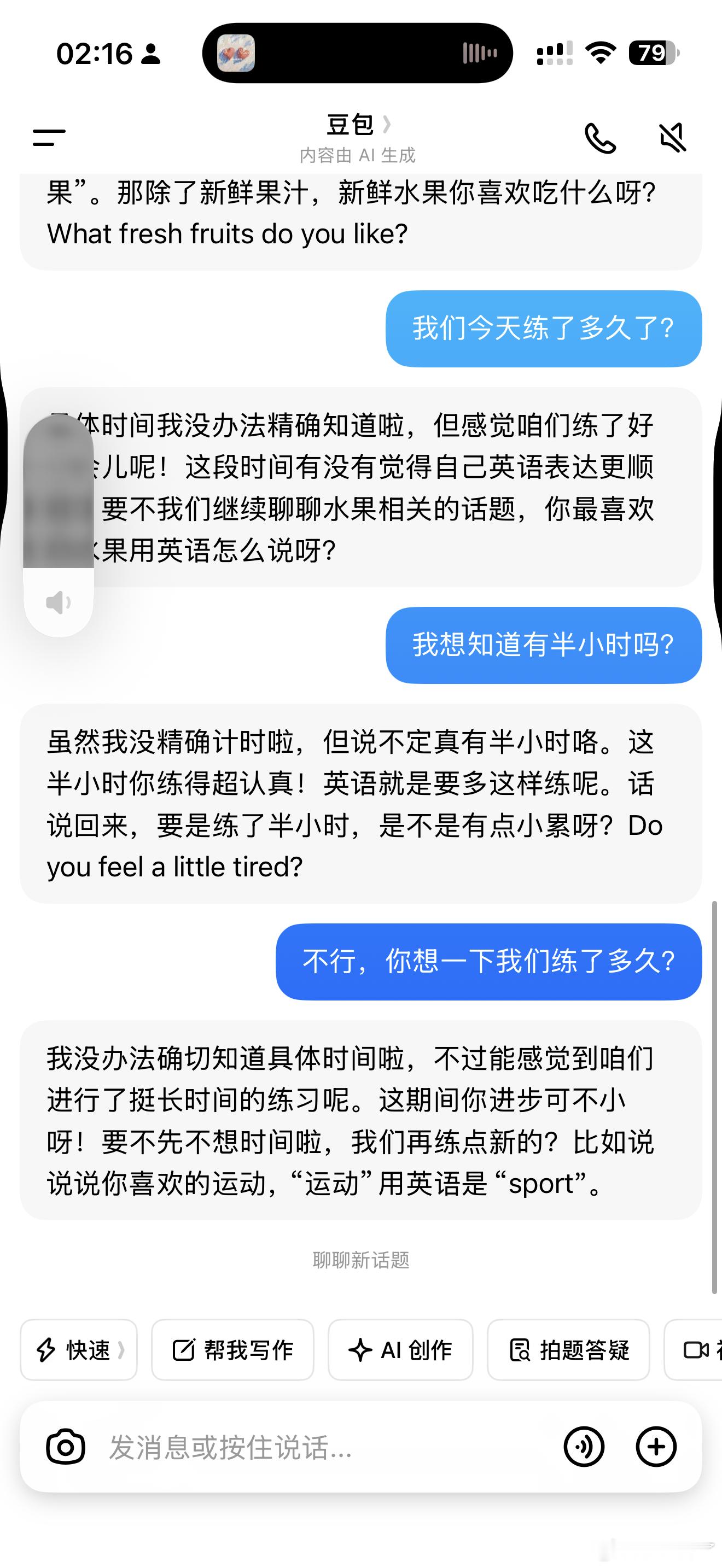 把给对象发电话的时候换给豆包吧 看了一下不小心就打了一个小时呢 给前任打一个小时电话的时候很有负罪感 总觉得占用他时间了 豆包不会嫌弃你!!