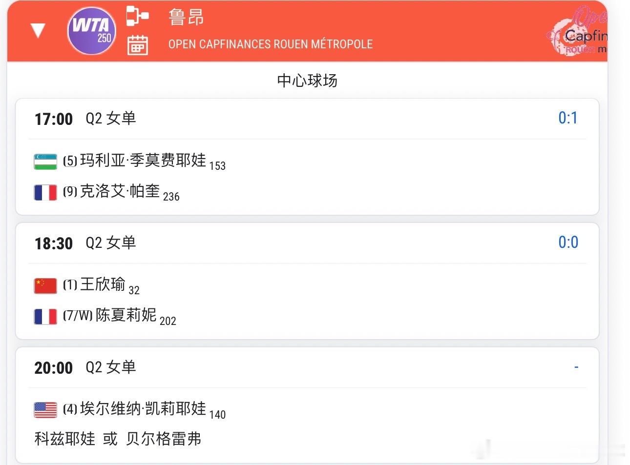 WTA鲁昂 资格赛R2 王欣瑜🇨🇳vs陈霞莉妮🇫🇷