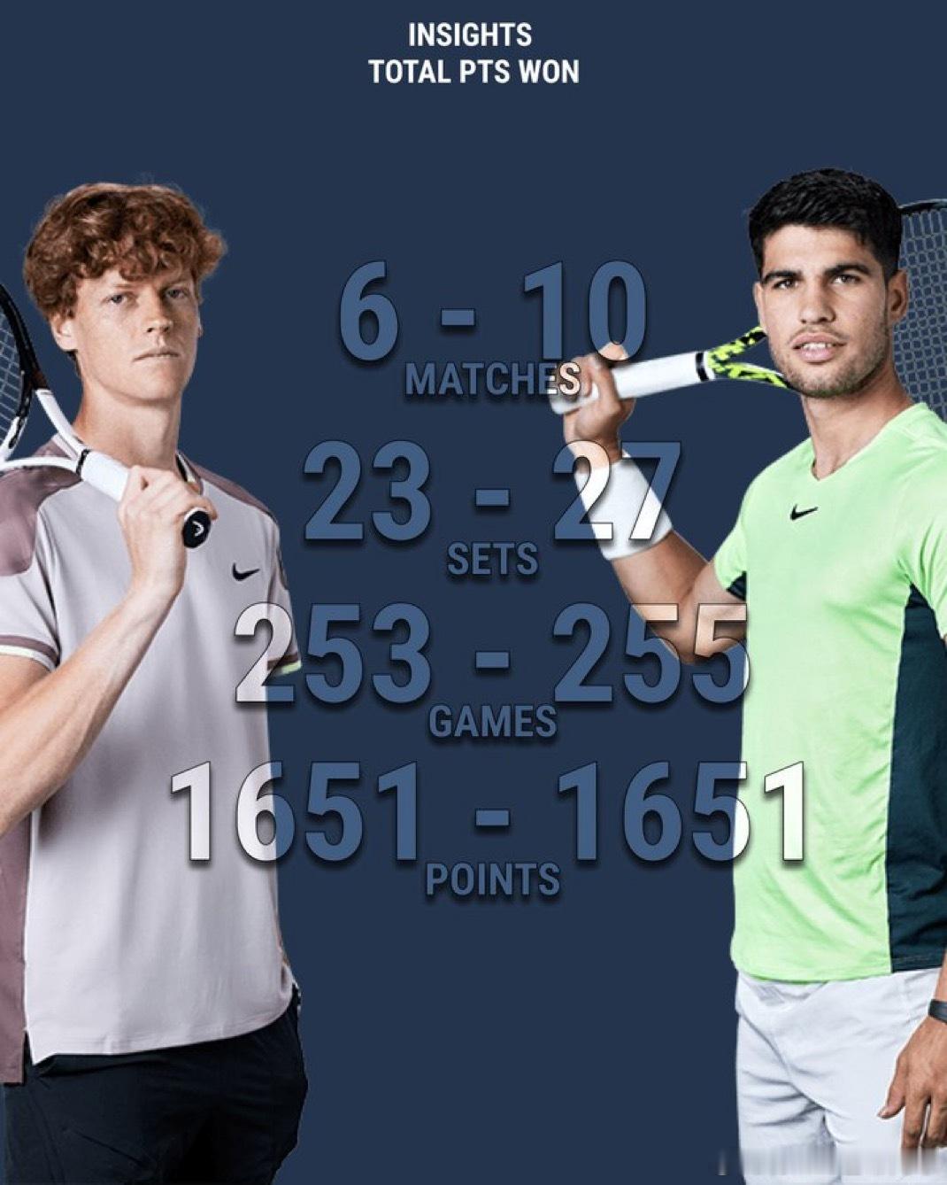 根据本次蒙特卡洛大师赛的击球质量数据,辛纳占据优势。不过大家都清楚,他和阿尔卡拉斯的交手历史向来充满悬念⚔️