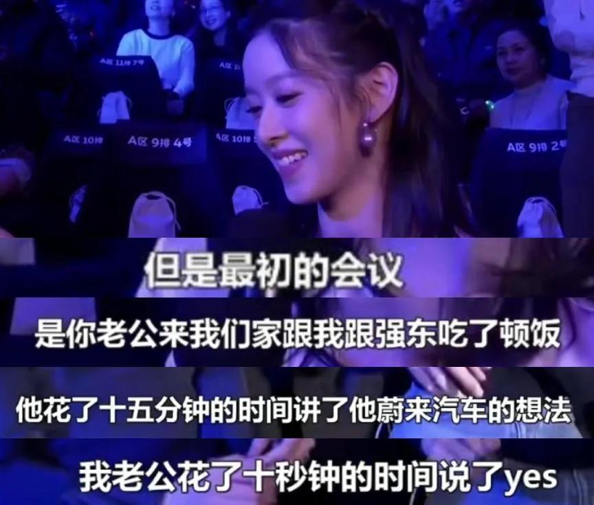 京东老板娘章泽天在蔚来汽车新品发布会上还曾提到过这件事,称:“最初的会议是李斌来我们家,跟我跟强东吃了顿饭。他花了15分钟讲他对蔚来汽车的想法,我老公花了10秒说yes。”