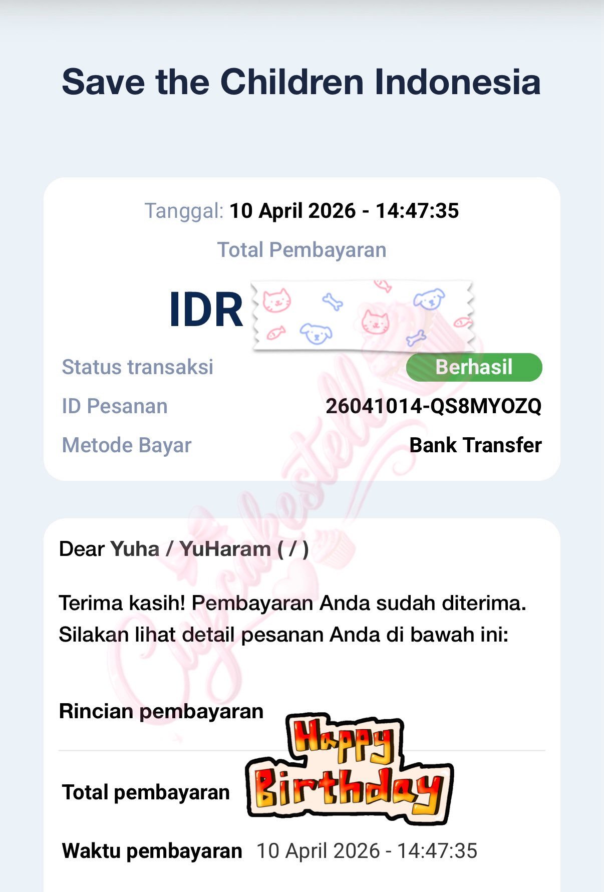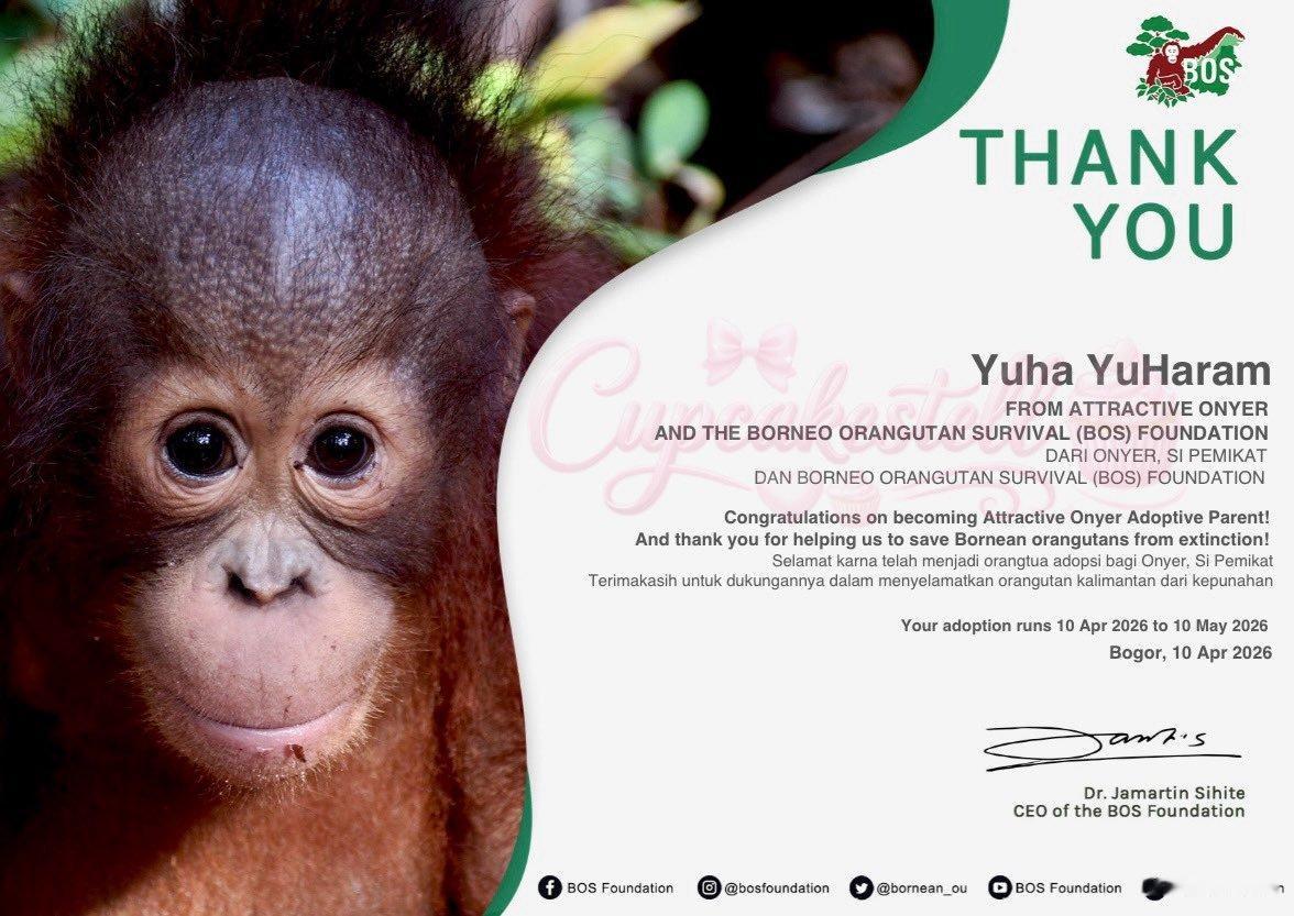 yuha0412生日快乐YUHA的一位印度尼西亚🇮🇩粉丝通过捐款以 Yuha YuHaram(유하 / 유하람)名义进行的 orangutan 领养活动,为 UNICEF 印度尼西亚、Save the Children 印度尼西亚以及 orangutan 领养项目贡献了一份小小的心意