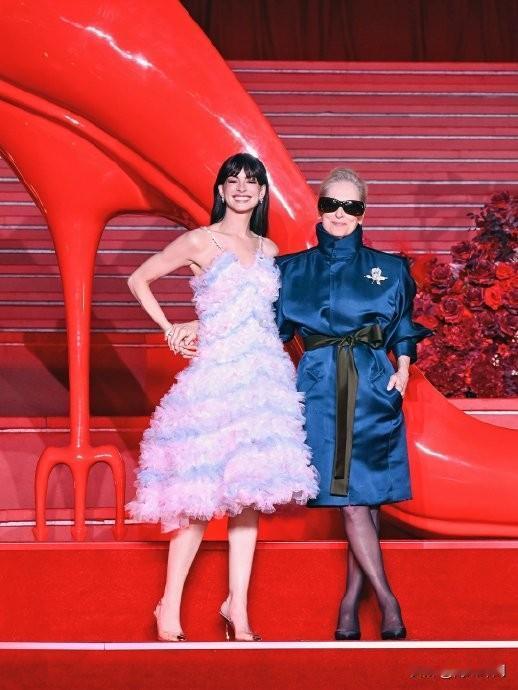 时隔20年,米兰达与安迪终于再度同框。 4月10日晚,《穿普拉达的女王2》中国首映礼于上海前滩太古里盛大举办,梅丽尔·斯特里普和安妮·海瑟薇登台亮相,这也是二人时隔20年再次合体同框。 76岁的斯特里普气场沉稳淡定,依旧带着米兰达独有的优雅风范。安妮·海瑟薇身着国内设计师设计的粉色蓬蓬裙,造型优雅大方。现场还复刻了影片经典的红毯场景,满是情怀,瞬间勾起大家2006年观看第一部电影时的回忆。 这部续作将于国内4月30日上映,档期比北美更早。喜爱这部经典影片的观众,届时不妨走进影院重温这份情怀。