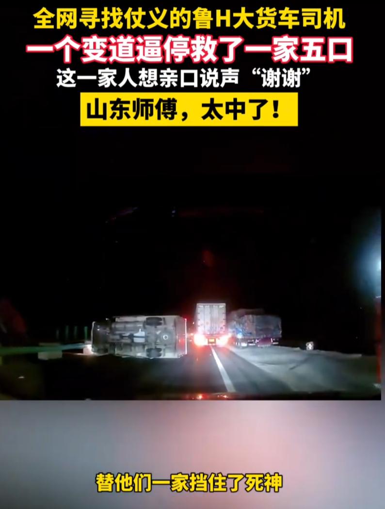 “这辆鲁H大货车火了!”湖北,男子一家5口去新疆自驾游,不料,在高速开车时,突然被一辆鲁H的大货车恶意别车,男子本来一肚子气,可走到前面才知道是误解对方了,因为前方就是一辆侧翻的大货车 当时,男子一家行驶至新疆吐和高速时,他刚打灯准备超车,前面那辆鲁H牌照的大货车,突然也跟着变道,硬生生把他堵在后面 要走超车道却被别车。这操作谁受得了?一车老小都在车上,他心里的火蹭蹭往上蹿,嘴里忍不住骂骂咧咧,心想这司机是不是故意找茬 可就在他气得不行的时候,前方视野突然开阔了,一辆侧翻的大货车横在路中间,车身几乎占满了整个车道,车灯碎了一地,场面触目惊心。如果他刚才真的超了过去,以那个速度,根本来不及反应,后果想都不敢想 那一瞬间他才明白,前面那辆鲁H的大货车,不是在别他,是在用车身挡他。不是恶意,是救命 原来那辆大货车的司机,因为位置更高、视线更远,早就看到了前方的车祸。他没法停下来喊话,也没法打双闪讲道理,只能用一次次看似不合理的变道,硬生生把后车逼停在一个安全的位置 这种沉默的守护,没人解释,全靠后车自己去悟。而现实中,很多人在这种情况下,根本来不及悟,或者悟到了也已经晚了 男子醒悟过来之后,心里五味杂陈。他赶紧跟上去,连续鸣笛,那是他唯一能想到的表达感谢的方式。前车的大货车司机也回了几声短促的鸣笛,像是一种默契的回应 他想看清对方的车牌,但夜里光线太差,只模糊认出是“鲁H”开头,后面的数字怎么也看不清。他不甘心,提前下了高速,在出口等了四十多分钟,想等那辆大货车出来,当面说一声谢谢。可那辆车始终没有出现 他后来把这段经历发到了网上,很多人留言说,这就是大货车司机的本能。他们常年跑长途,见过太多事故,知道什么时候该踩油门,什么时候该挡一挡 说实话,这种事在高速上并不少见。大货车因为视野好、经验多,有时候比小车司机更早发现危险。但问题是,他们表达善意的方式太容易被误解。你挡他一下,他觉得你在别他;你慢一点,他觉得你在堵他;你闪一下灯,他觉得你在挑衅 偏偏这些人还不会解释。他们不会举着牌子告诉你“前面有事故”,也不会停下来跟你讲道理。他们只能用自己的车,用最笨的办法,帮你挡一次 而这世上很多善意,恰恰就是这种“被误解的好心”。它不会提前打招呼,也不求回报,甚至不介意被你骂几句,只要你最后安全了,就行 最后,再为这个货车师傅点个赞!