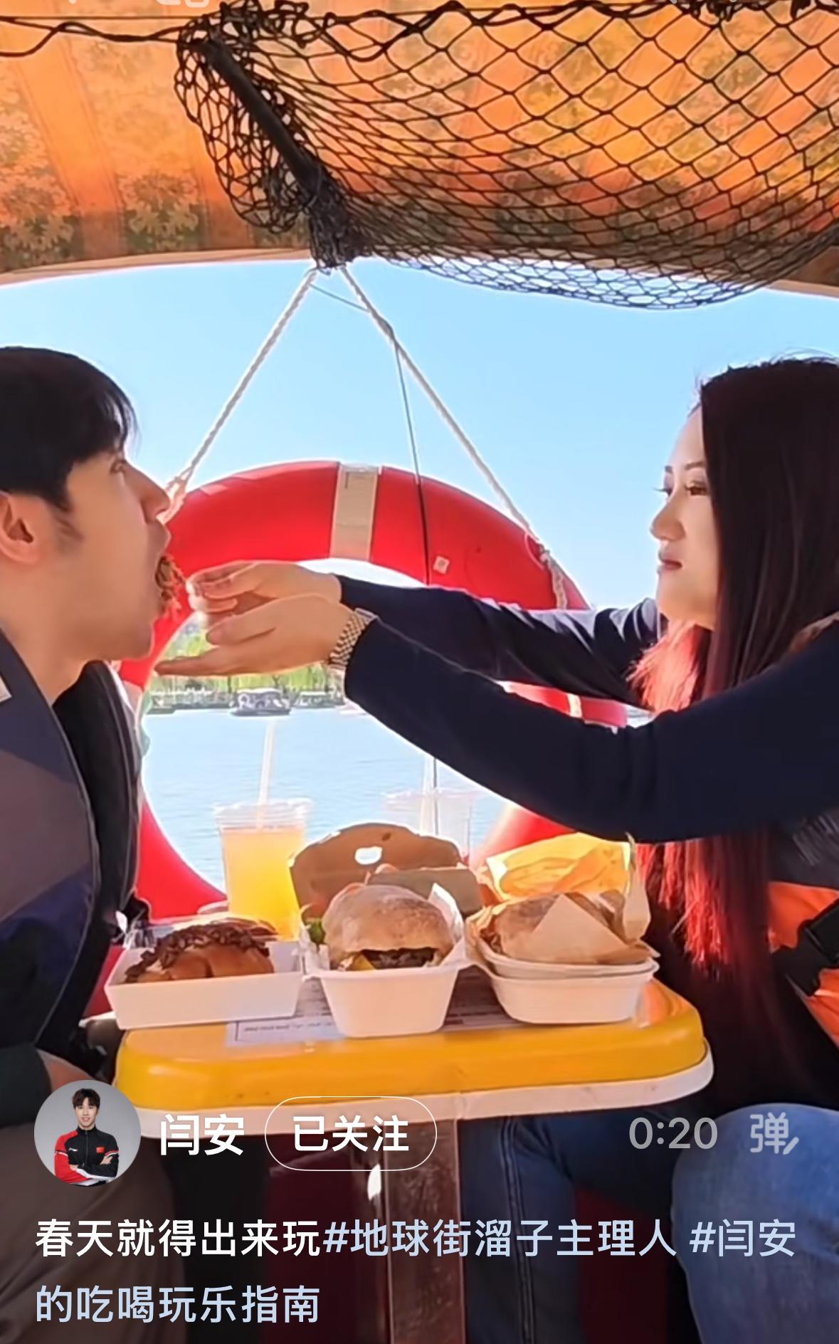 闫安更新:春天就得出来玩! 4月12日,闫安更新视频, 在北京最好的季节, 带着媳妇来到朝阳公园面包节, 排队的人可真多啊, 经过两个多小时的排队, 终于进去啦, 200多个摊位, 每一个都非常火爆, 才到下午,好多东西都卖完啦! 闫安打趣说, 不如给我爸也支个摊, 就卖炸酱面,肯定非常火! 闫安和媳妇玩得非常开心, 他媳妇非常幽默 , 看到闫安骑着小观光车来来接自己, 就说以为闫安会骑着七彩祥云来接, 没想到闫安更幽默, 两块钱一位,上不上? 这夫妻平时说话很有趣, 很真实的两口子, 羡慕他们的爱情💓, 爱情随着年龄的增长越来越深沉, 一起逛公园, 一起划船🚣, 一起享受快乐时光与美食, 希望国乒运动员都能找到 自己的美好爱情💑……