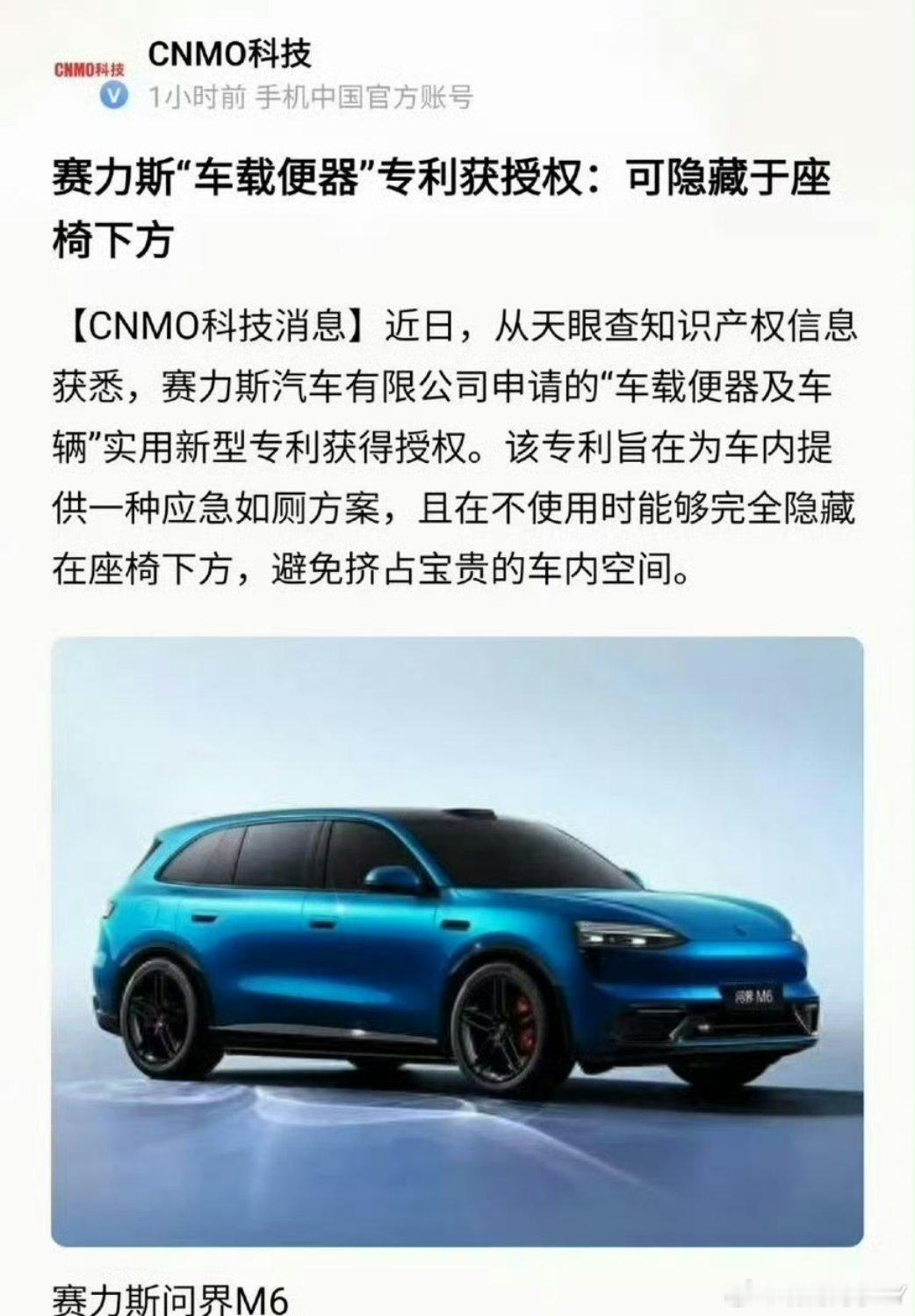赛力斯将推出车载厕所赛力斯直接把厕所搬上车也太敢想了!高速上用完一关门,密闭车厢不得直接臭到窒息?以后开车出门,怕是要自带空气净化器才敢坐吧