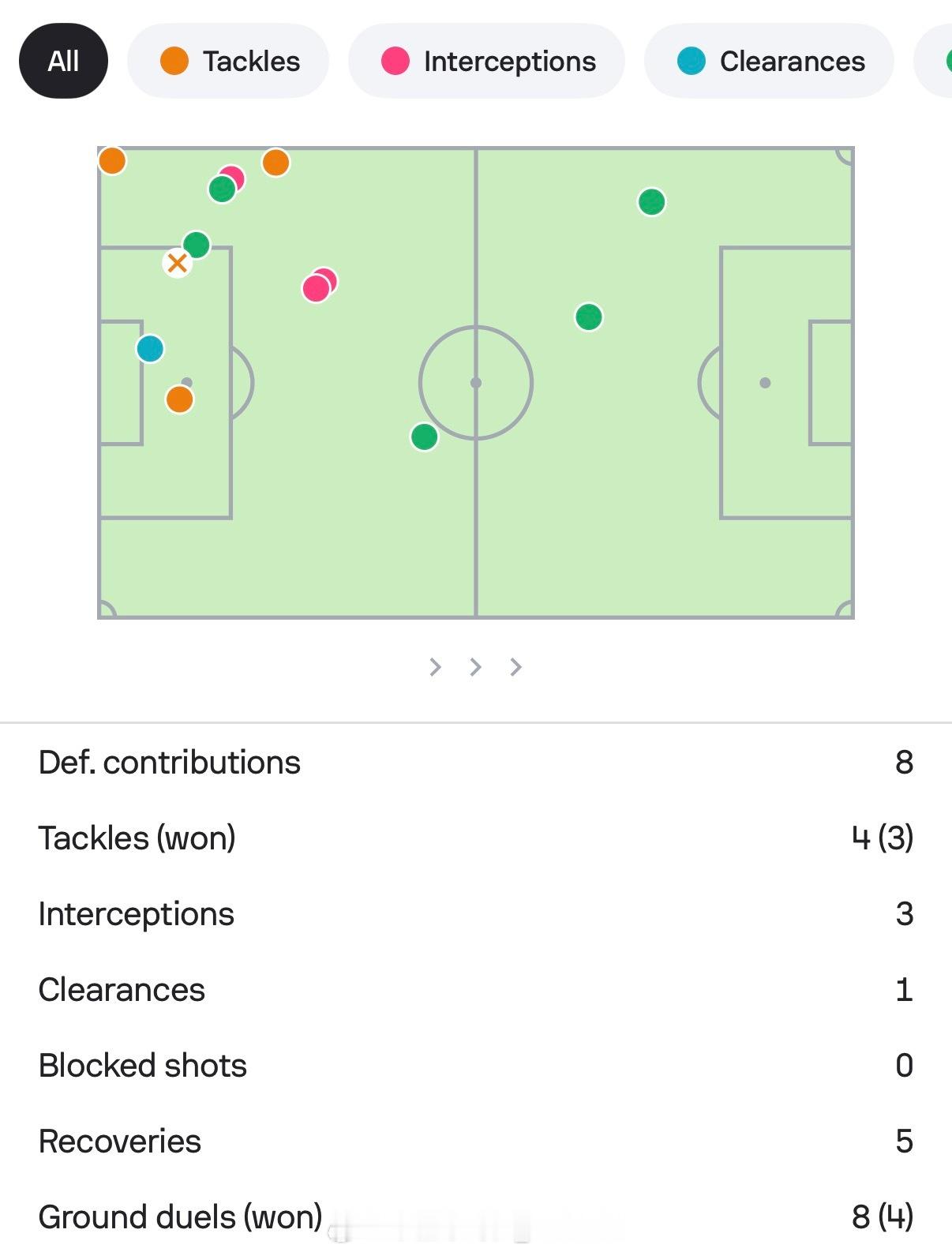 防守图很能说明问题,几乎填满防守数据栏,大禁区周围汪海健的覆盖面积足够出色,尤其是几次选位拦截,有些令人惊喜。