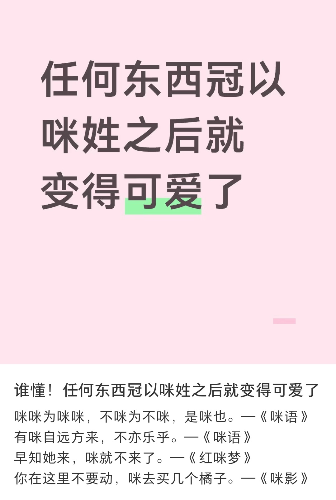 任何东西改成咪姓就变得可爱了