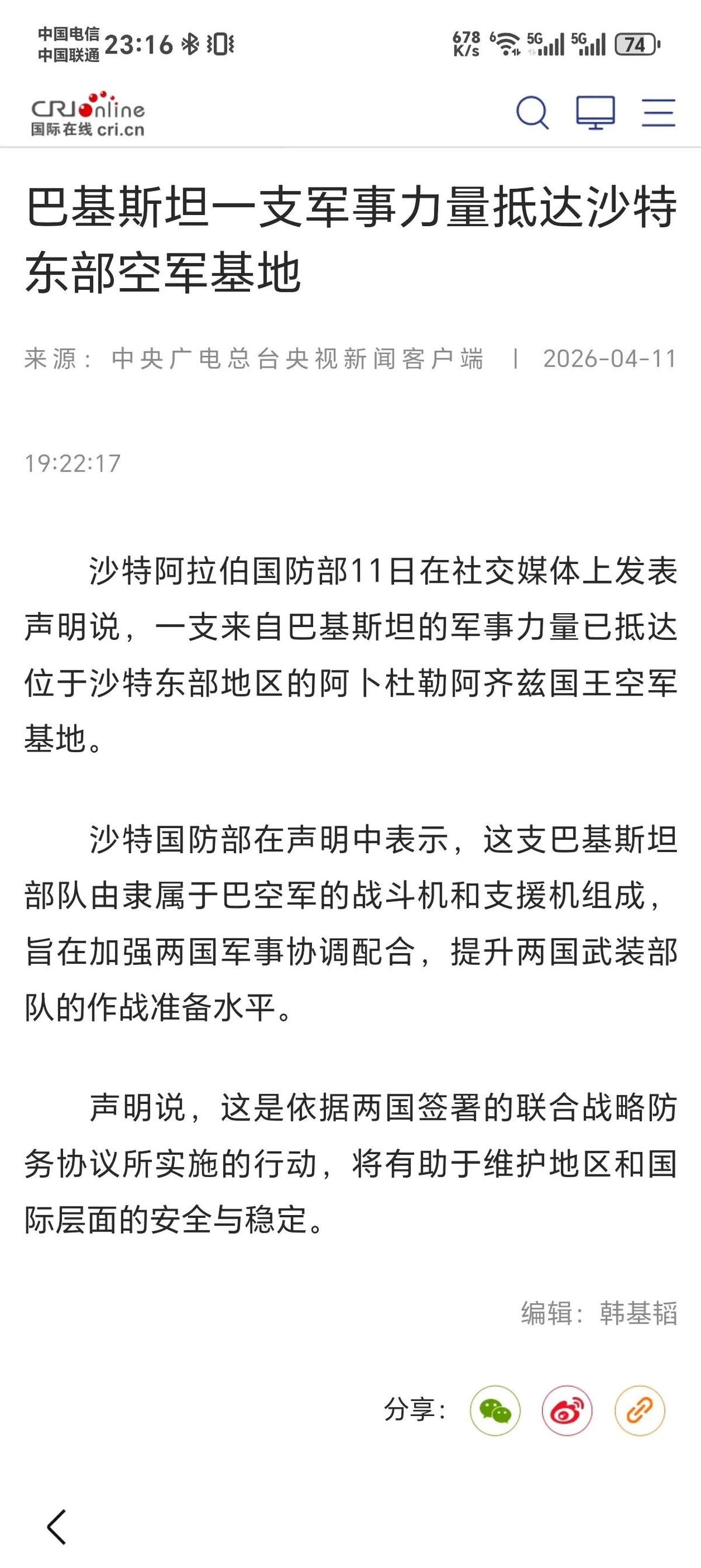 沙特阿拉伯国防部宣布:根据沙特与巴基斯坦两国签署的《战略共同防御协议》,巴基斯坦开始在沙特部署军事力量,第一批巴基斯坦空军骨干及相关机型,已正式入驻当地重要的空军基地。 不少人纳闷,巴铁怎么突然跑去中东站岗了? 这就是一桩明码标价的安保生意。现在的巴基斯坦确实难,手头实在是紧。眼看4月底,欠阿联酋的35亿美元巨债就得到期。 火烧眉毛的节骨眼,沙特拉着卡塔尔,砸出50亿美元援款。 这笔钱来得太及时。不光帮着平了账,更是硬生生给人续了命。 拿钱办事听着直白。但搁在国际场上,这套逻辑特别好使。 沙特富得流油不假。可自家军队打起仗来是什么水平,大伙儿心里都有数。相比之下,巴基斯坦的飞行员和地导部队,那可都是真刀真枪喂出来的硬茬。 特别是这次派过去的JF-17“枭龙”战机。这款中巴联合研发的机型,皮实耐造,性价比极高。 沙特掏钱买平安。 巴铁出人挣饭碗。 两边把这笔账算得门儿清。 赚这份血汗钱,一点不丢人。 手里有拿得出手的硬通货,拿去换急需的生存资源,这就叫大国夹缝里的生存之道。有些声音嘲笑巴基斯坦“出卖武力”,纯属站着说话不腰疼。 与其去信那些轻飘飘的口头承诺,不如真金白银的契约来得踏实。这套拿安全换金钱的玩法,其实就是中东圈子在务实地重新洗牌,压根没必要站在道德高地上指指点点。 利益面前,能明码标价的交情,往往比空头盟约靠谱得多。 对此,你怎么看?