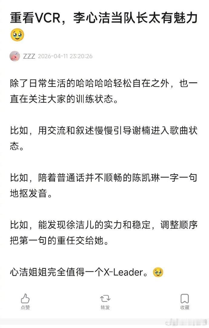 李心洁浪姐当队长太有魅力了李心洁身上的队长魅力真的藏不住,认真专注的样子格外迷人,还贴心帮助队员提升,让每个人都展现出最好的一面,舞台成绩全是应得的。
