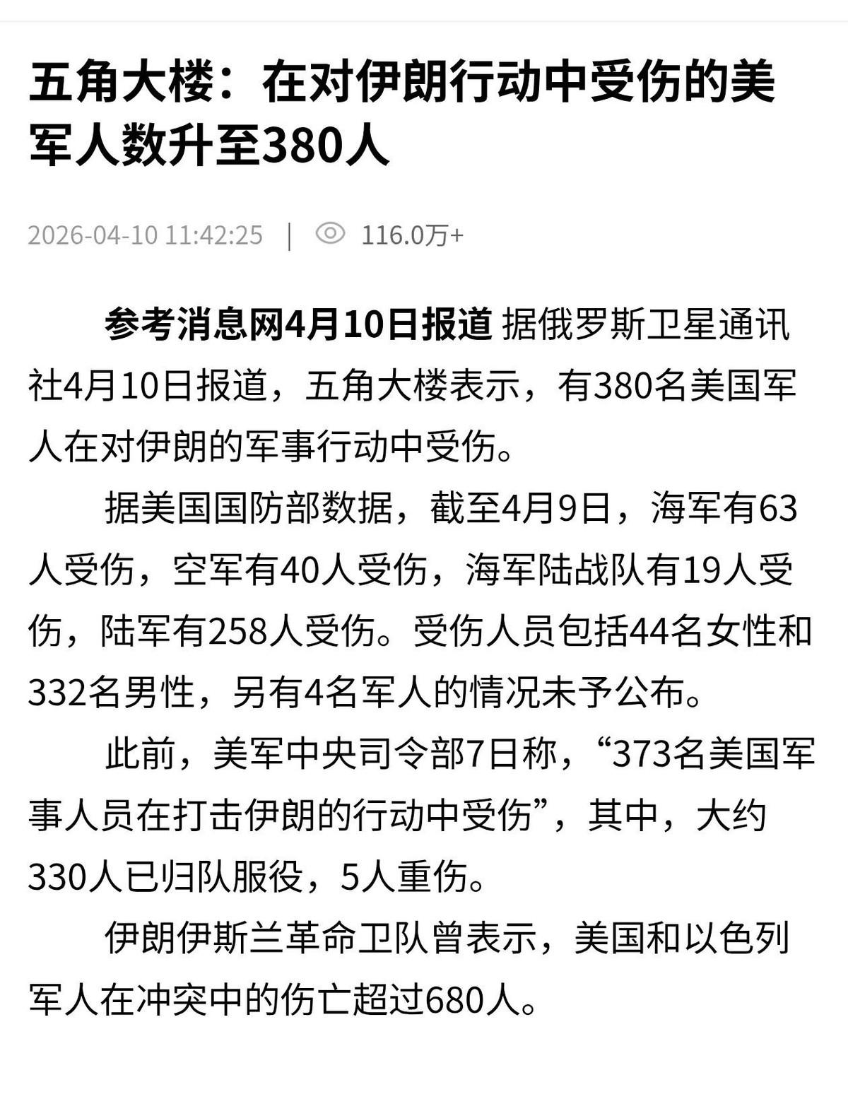 美伊对账对出大窟窿,伊朗拍胸脯:我们干掉了680个美国大兵!美国五角大楼:扯淡!一个阵亡的都没有,就伤了380个。这中间差着一整个加强营的兵力。 难不成美军个个都练了复活神功? 这压根不是战报出了差错,全是五角大楼在玩冷血的数字游戏。 华盛顿那套“阵亡”标准,高得离谱。人在前线当场倒下,还得尸首完整,能靠牙医记录查明身份,这才算真“阵亡”。 哪怕你被抬上担架,离医院大门只剩一步路咽了气。对不起,人家账本上管这叫“非战斗损耗”。活生生的人命,就这么被强行塞进了会计表格的“折旧费”里。 猫腻还不止这些。 美国在战场上大批用的是保安公司的“合同工”。替正规军冲锋陷阵的,恰恰是这帮编外人员。翻翻伊拉克和阿富汗战争的底账,死伤数字高得惊人。但在五角大楼的笔下,这些拿命换美元的人死得再多,也不配进阵亡名单。 他们只是事故通报里冷冰冰的意外记录,外面连个响动都听不到。 这算盘打得多精。 阵亡抚恤金、后续赡养费,真发下去那是天价,不认阵亡,这笔巨款直接省了。 选票也能保住。只要报表上的数字够漂亮,政客们就能继续站在聚光灯下吹嘘:看,这场仗打得多轻松,一切都在掌控之中。 靠玩弄文字来粉饰太平,把大头兵的命当成可以随意涂改的账目分录。美军所谓的强大神话,底子早就烂了。 纸面做账能糊弄一时的舆论。可人死不能复生,家属心里的窟窿,那些政客拿什么填? 人命关天。 一个连直面牺牲的胆量都没有的超级大国,剩下的,不过是一具虚伪的空壳。 对此,你怎么看?