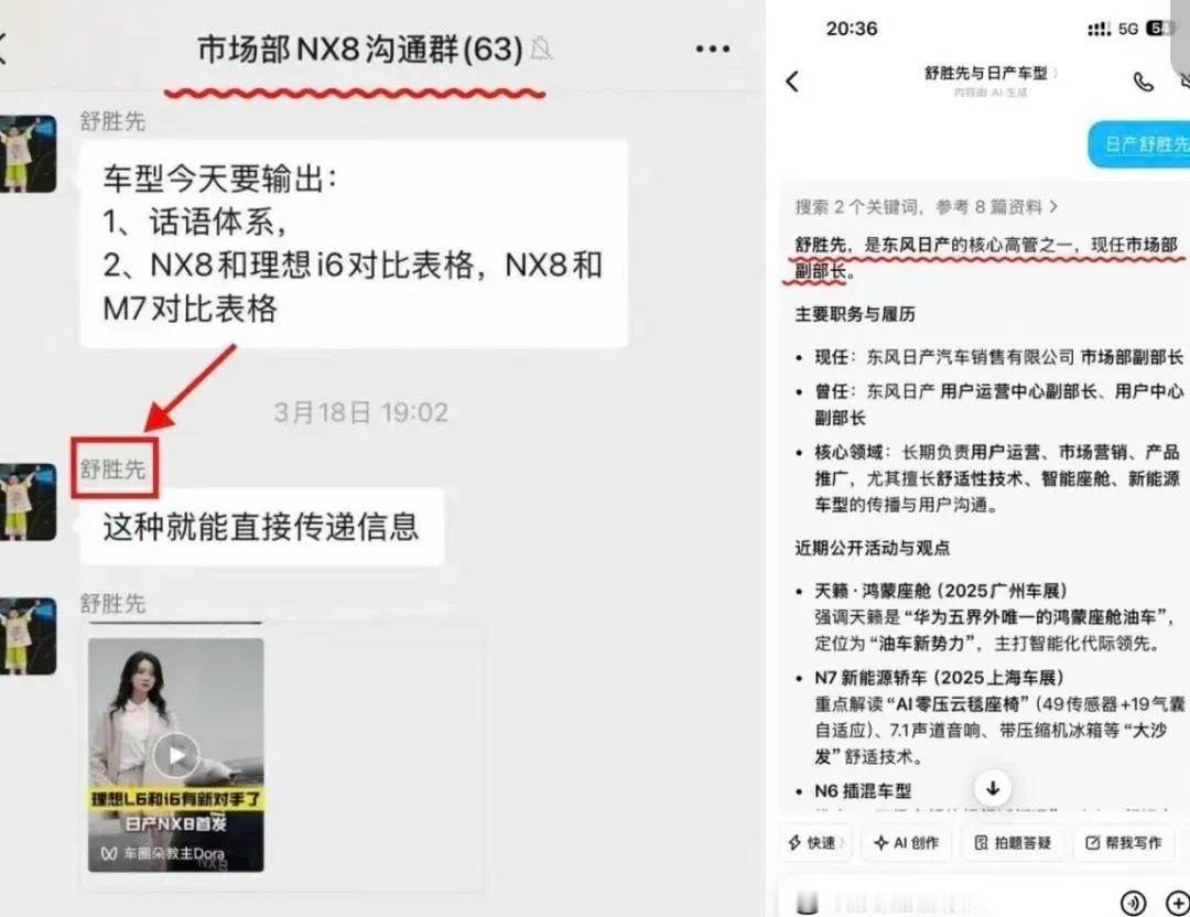 李想气到飙脏话,为什么急了? 看了一下李想晒出的证据,说实话,严格来说拉踩都算不上,可以理解为对比营销。我们来看几条内容,比如“20万预算,NX8 or 理想i6?”,“NX8已下定,家用自驾太合适,对比理想i6后直接锁单,周末全家出游”。基本上都是类似的内容。 之前理想MEGA被黑成那样子,一个被寄予厚望的车型都废了,李想都忍住了,都没发飙,这次似乎有点反应过激了。为什么会这样呢? 第一个可能原因,i6已经成为理想的主力车型,3月理想汽车卖了4.1万辆,其中i6卖了2.4万辆,贡献了近6成的销量。自家的主力车型被盯上,李想自然不爽。 第二个可能原因,日产NX8真有可能对理想i6构成威胁,如果完全没影响,李想应该不至于反应这么激烈。这两款都是大中型SUV,虽然理想i6配置更高一点,但日产NX8便宜了近10万元。 实际上,日产NX8在今年4月8日才正式上市,才这么几天,就让李想如此紧张,那肯定是觉得日产NX8是一个威胁。看到有网友评价:之前是没钱,买国产,现在是没钱买国产。 说实话,李想这一波操作反而给日产NX8做了免费宣传,尽管东风日产之前花了不少钱,发了不少帖子,但知道的人依旧有限。现在李想炮轰之后,日产NX8反而破圈了,很多人都知道了。 至于消费者会不会选择日产NX8,我觉得他们会用脚投票,用自己的钱包投票。