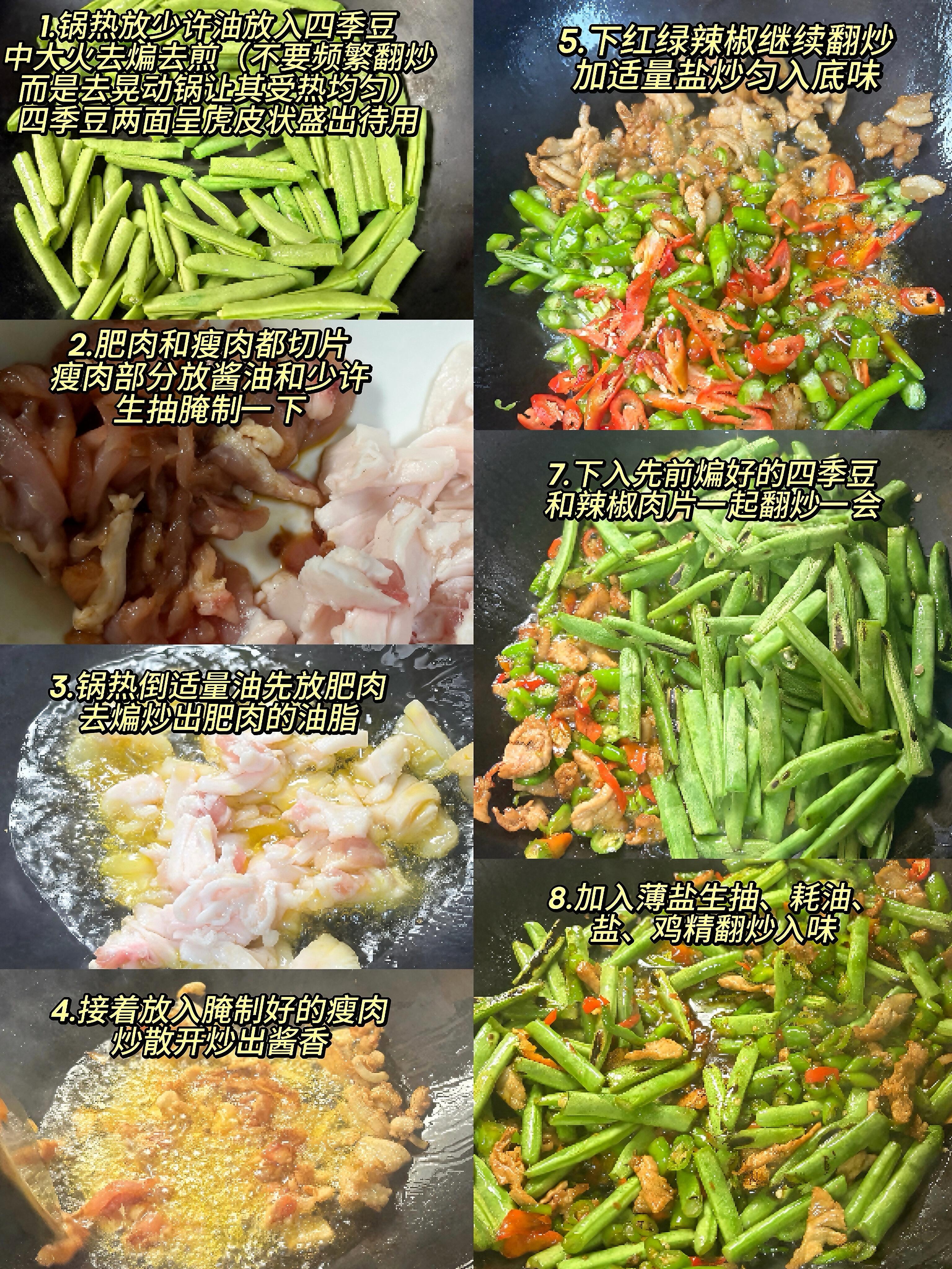 小贴士:四季豆一定要煎熟煮透,避免夹生;五花肉肥瘦分开炒,油脂煸出来更喷香,瘦肉不柴;中小火慢煎四季豆,才能炒出虎皮状和锅气~