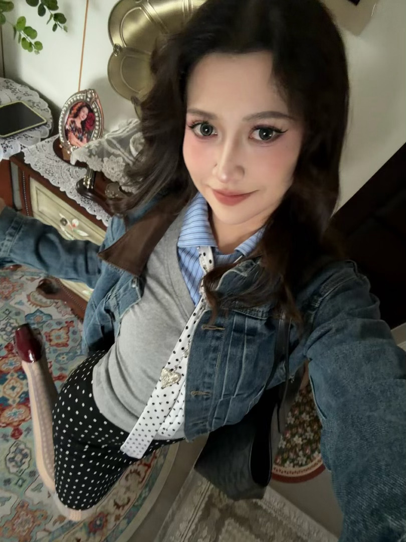 很难得这年头还有人有这样的打扮。真的是绝版了![笑着哭]