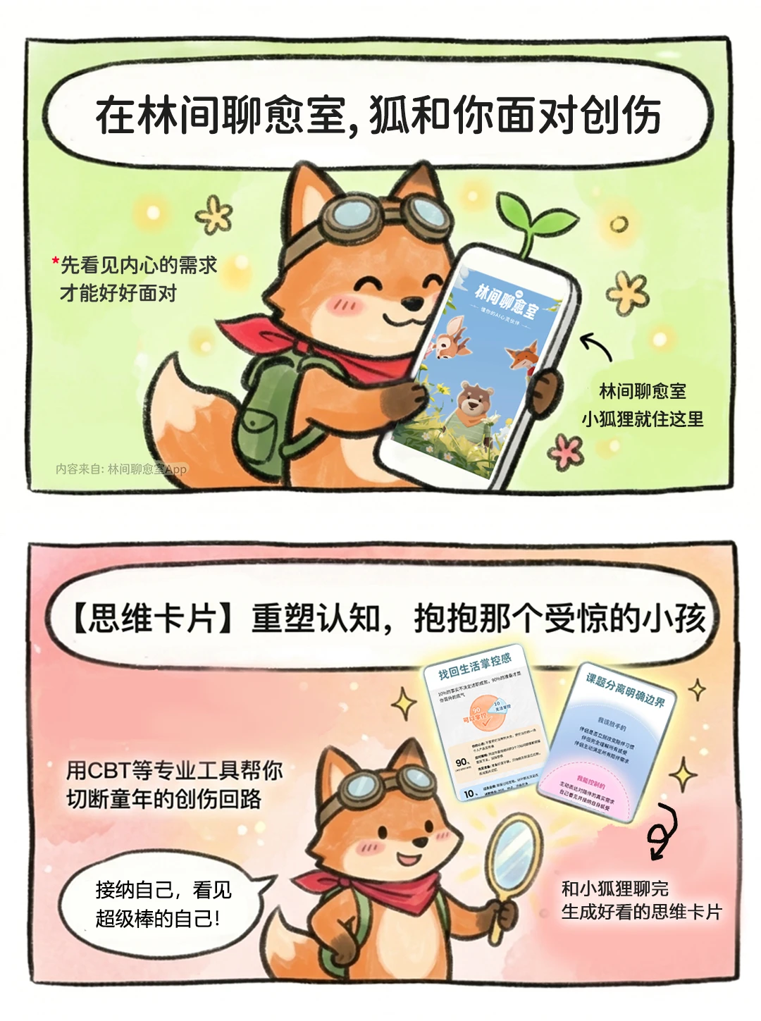 🦊 当你陷入灾难化思维和愧疚时,花花狸用 [思维技法卡片],陪你理清这些创伤回路,重新建立认知。