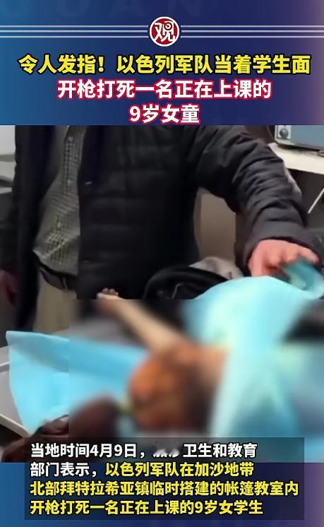 真的越看越气,一个才9岁的小姑娘,没招谁没惹谁,安安静静在帐篷里听课,就这么被一枪打死了,动手的就是以军! 当地时间2026年4月9日,加沙北部拜特拉希亚镇,发生了一件让人揪心到骨子里的事,9岁的巴勒斯坦女孩里塔杰,和其他无家可归的孩子一起,在一间临时搭的帐篷里上课。 谁能料到,平静的课堂突然被一声枪响打破,里塔杰中了以军的子弹,当场就没了呼吸,全班的小朋友都亲眼目睹了这一幕,这份恐惧恐怕会伴随他们一生。 可能很多人不知道,这哪里是什么正经教室?就是几块破布支起来的简易帐篷,没有黑板,没有桌子椅子,孩子们只能坐在冰冷的地上听课。 可即便这样,这里也是他们在战火纷飞的日子里,唯一能安心读书、寻找一丝希望的地方,更让人怒火中烧的是,事发当时,帐篷周围安安静静,没有任何打斗,也没有任何军事设施,这里明明被划定为“安全区”啊! 还说是什么误击?骗谁呢!子弹从两公里外精准穿透帐篷,不偏不倚打在一个手无缚鸡之力的小女孩身上,这根本就是故意的,是毫无底线的残害! 而且这绝不是偶然,加沙的孩子们,早就生活在这样的恐惧之中,不知道哪一天,灾难就会降临到自己身上。 这么长时间以来,以军一直打着“军事行动”的旗号,在加沙到处乱开枪、乱袭击,难民营、学校、给老百姓发物资的地方,只要是有平民聚集的地方,他们就敢下手。 光是领取物资时被打死的民众就有上千人,还有超过4000名儿童,因为这场冲突被迫截肢,无数孩子失去了家园,失去了疼爱自己的亲人。 说白了以军嘴里喊的“安全区”,就是一个彻头彻尾的谎言,他们根本不管平民的死活,更不会在意一个孩子的生命,在他们眼里,所谓的人道主义底线根本一文不值,一个9岁孩子的性命,在他们看来或许还不如一颗子弹金贵。 真的太让人愤慨了,无辜的孩子本就不该被卷入战火,更不该成为牺牲品,这种毫无底线的行为,全世界都看在眼里,善恶终有报,他们迟早要为自己的所作所为,付出应有的代价! 信息来源:观察者网《令人发指!以色列军队当着学生面,开枪打死一名正在上课的9岁女童》2026-04-11