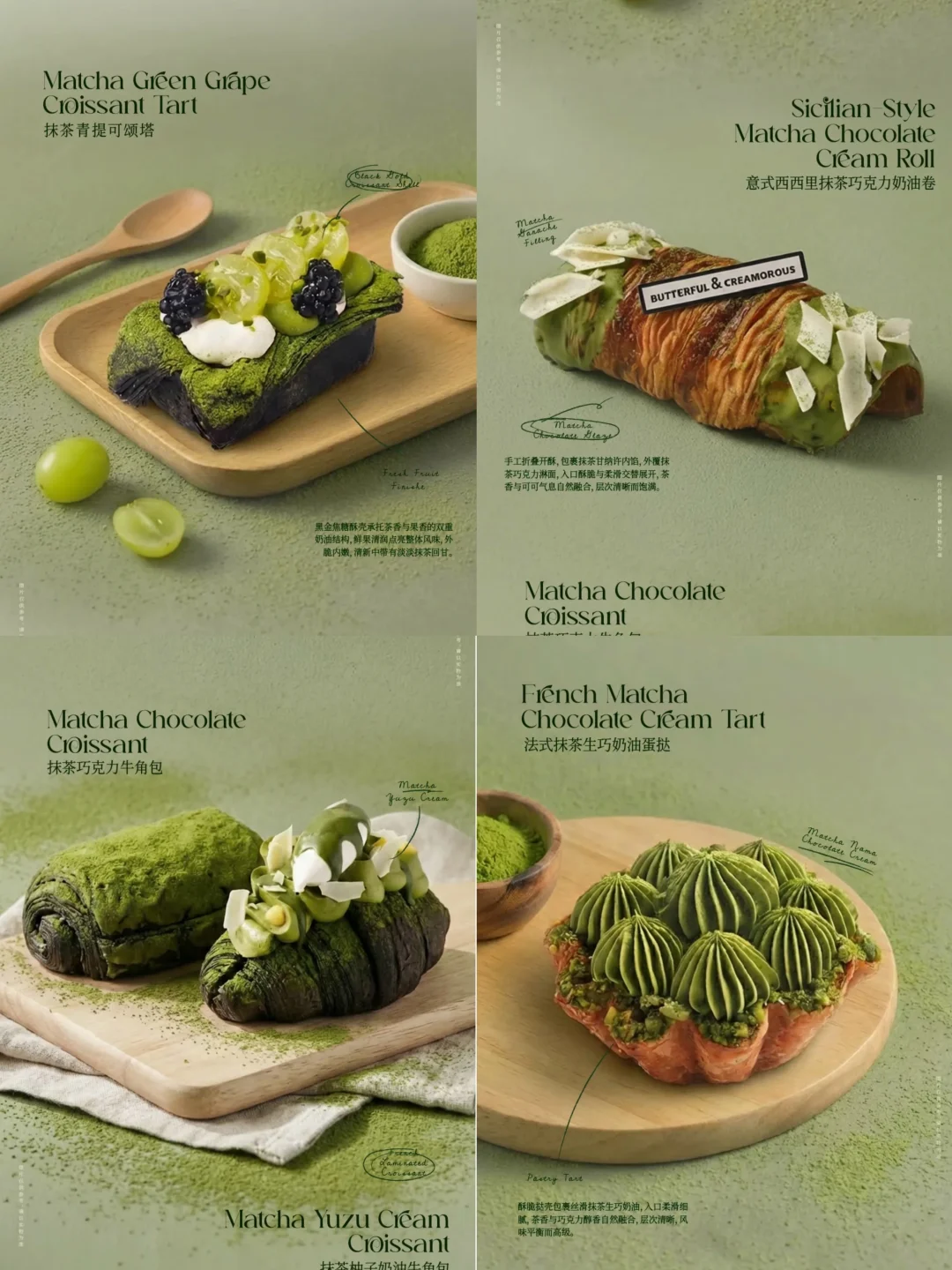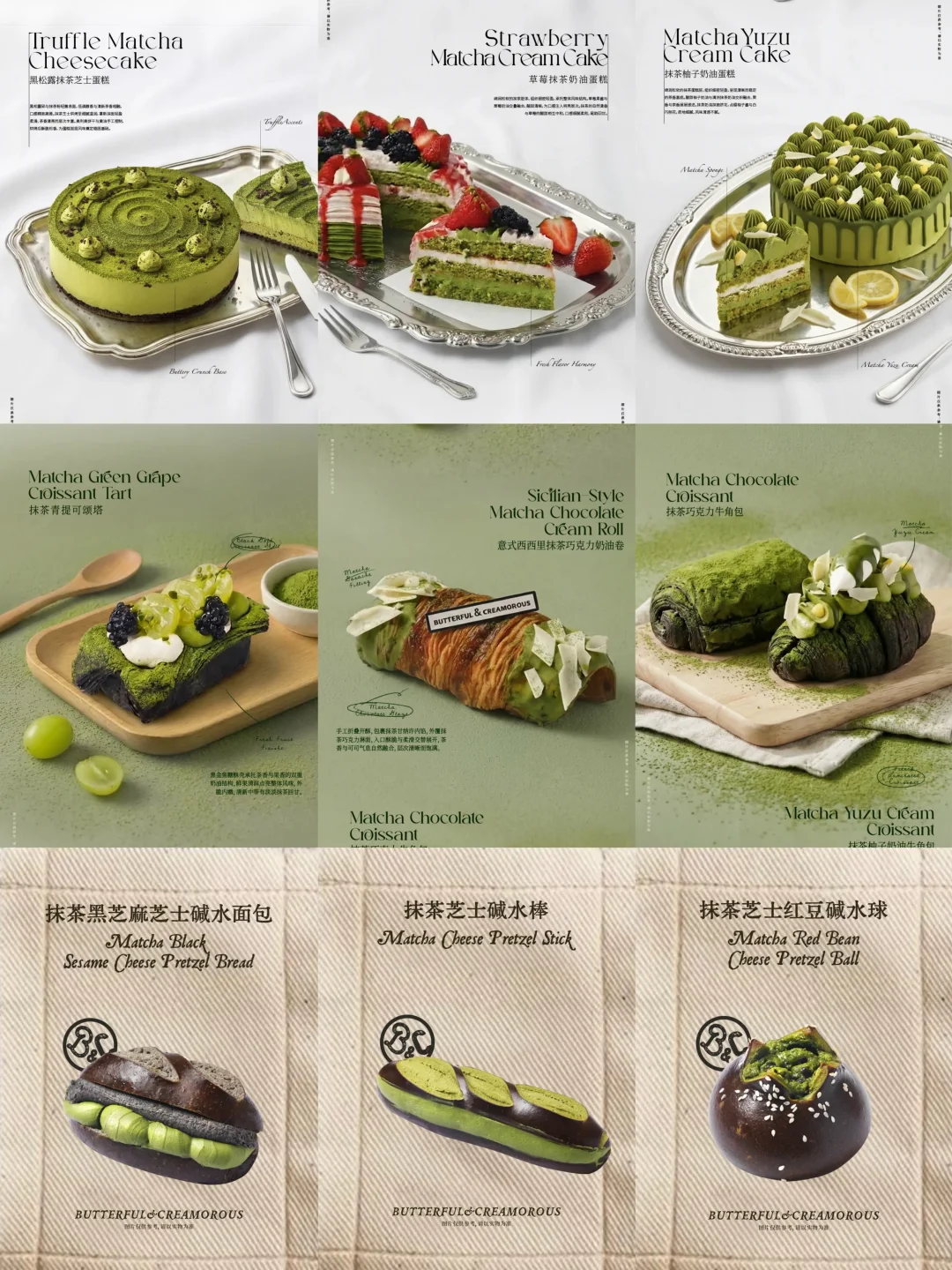 抹茶 甜品治愈一切 黄油与面包 bc黄油与面包 新品 可颂 蛋糕 抹茶控 面包 瑞士卷