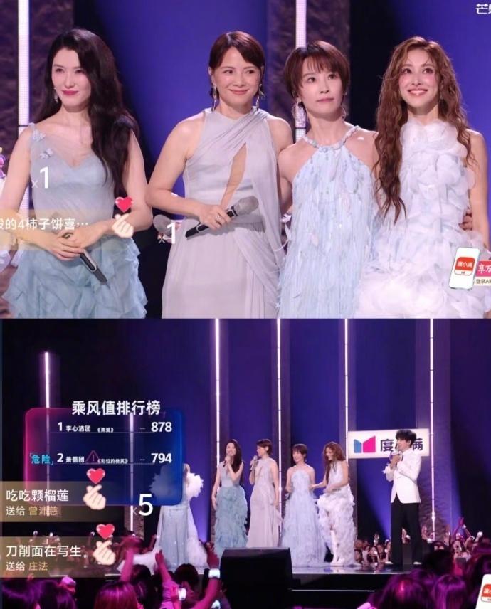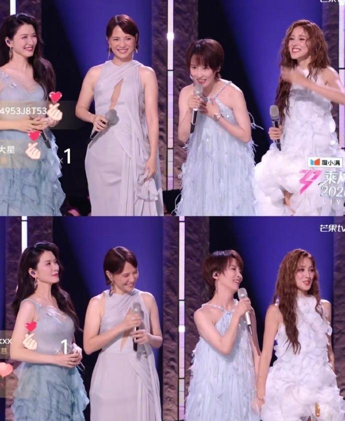 舞台下的李心洁也太有亲和力了,和每位姐姐都能聊得投机,来回穿梭热聊,被美女环绕的样子也太好玩了。