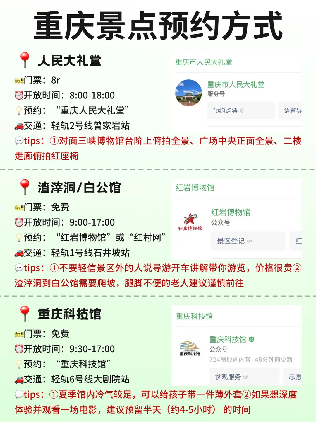 🚇高铁:重庆北站/西站/沙坪坝站,北站离市中心最近,西站较远但地铁连通
