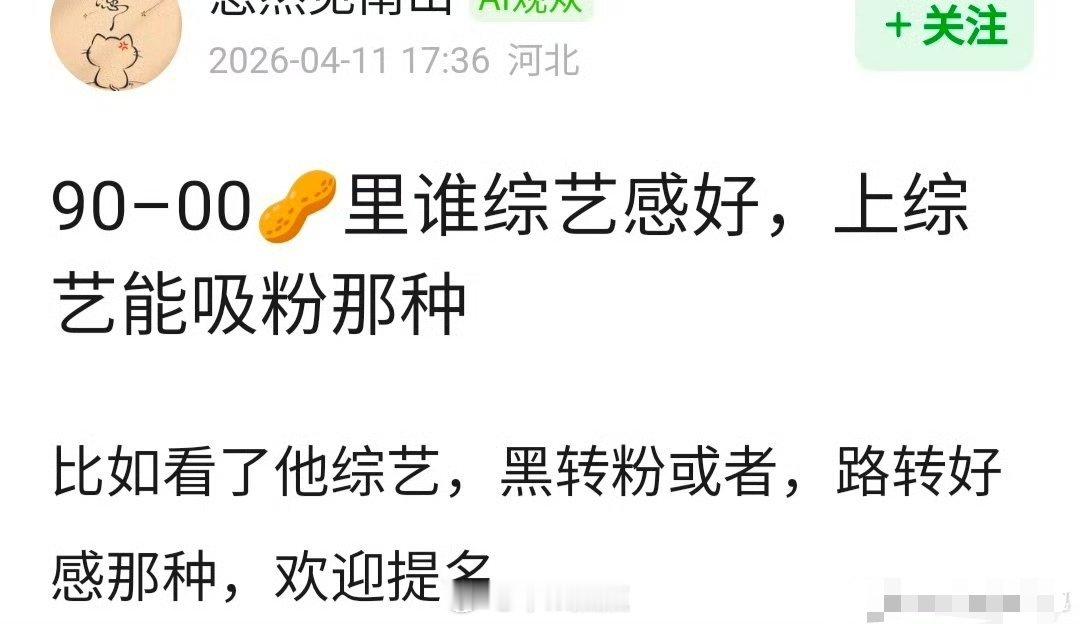 90–00🥜里谁综艺感好,上综艺能吸粉那种
