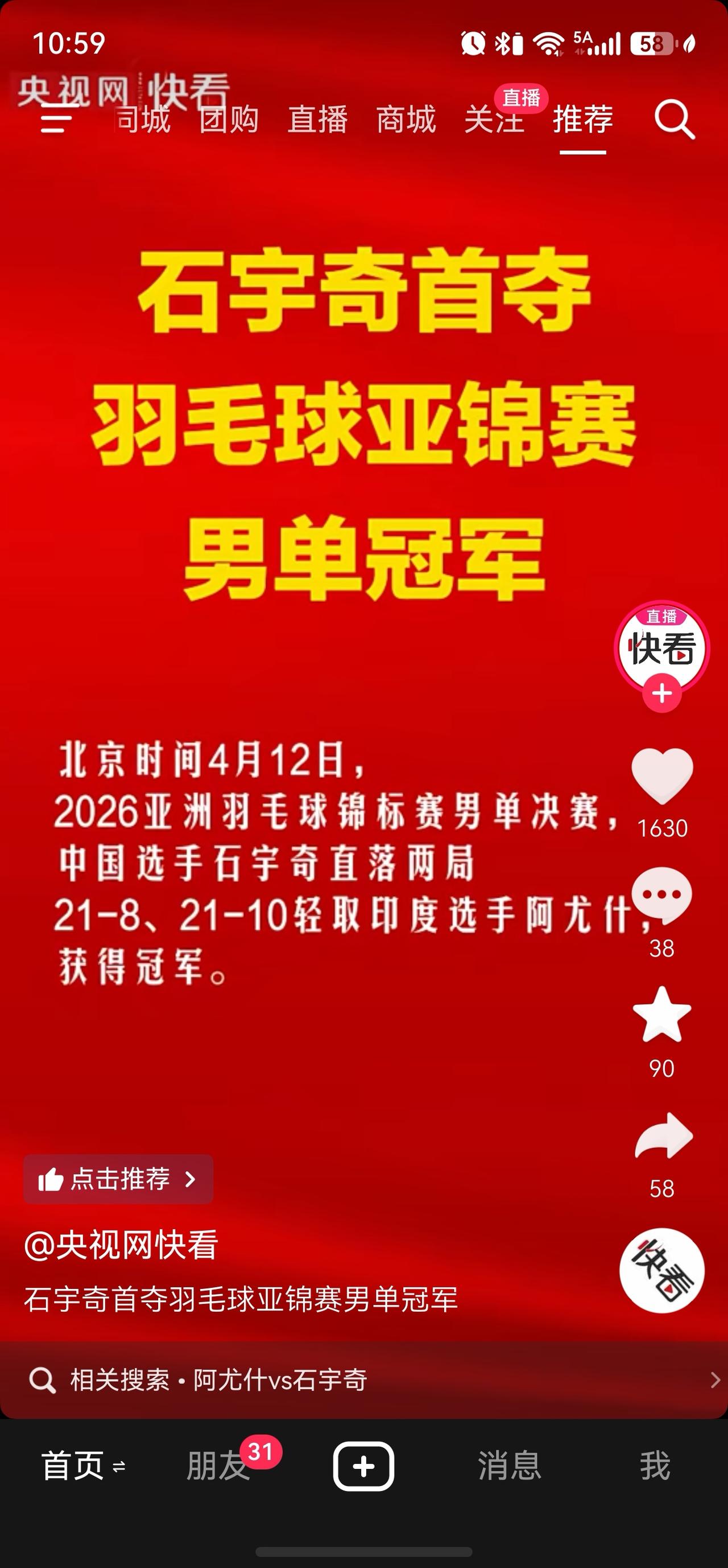 恭喜石宇奇夺得了羽毛球亚锦赛的男单冠军! 希望再接再厉,在更大的赛场发挥更好的水平,一直保持领先!羽毛球