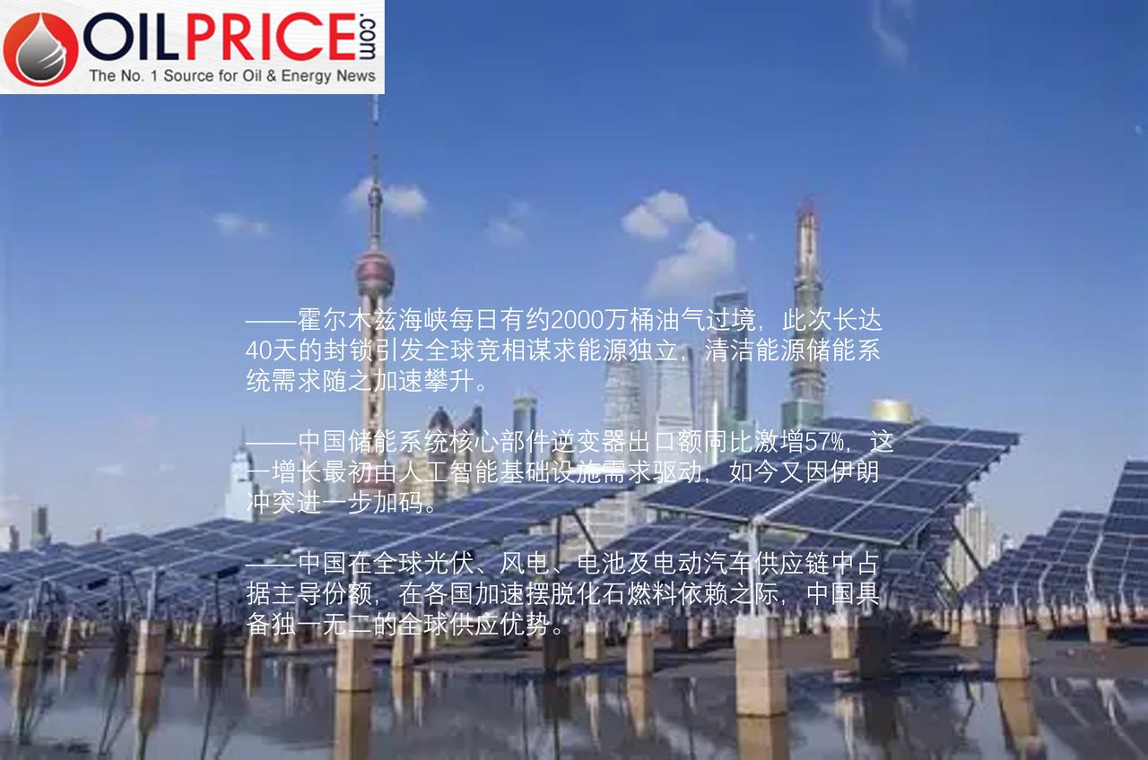 霍尔木兹海峡封锁:全球能源格局重塑,中国清洁能源迎来重大红利 在脆弱停火的背景下,霍尔木兹海峡能否恢复全球油气贸易流通、恢复程度几何,仍存在极大不确定性。但可以确定的是,这一历史性航运中断带来的深远影响,将长期作用于全球能源行业。事实上,全球能源格局或许将就此发生永久性改变。 霍尔木兹海峡是连接波斯湾与阿拉伯海的水道,由伊朗控制,全球日均约五分之一的油气贸易需经此航道通行。一个多月前,美以开始对伊朗实施轰炸后,这条日均约2000万桶的油气运输线几乎彻底中断。受此影响,全球油气价格一夜暴涨,对能源进口依赖度更高、抗市场冲击能力更弱的亚洲及全球南方贫困国家,遭受的冲击尤为严重。 在此背景下,全球能源发展重心转向能源安全与抗风险能力,将其列为最紧迫议题,即便这意味着要艰难转型,摆脱根深蒂固的贸易关系与庞大的传统能源基础设施。简而言之,这场危机将推动全球清洁能源转型——以及与之关联的全球储能行业——驶入快车道。 《福布斯》本月初的一篇报道指出:“多年来,清洁能源一直被视作道义层面的必然选择。如今,它已然成为经济与地缘政治层面的刚需。这无关碳排放,而是关乎能源韧性与价格稳定。” 此次危机充分暴露了当前全球能源贸易的脆弱性,国际能源政策也已开始随之调整。正如《福布斯》所言,伊朗冲突“再次暴露了全球化石能源体系的脆弱性:过多经济话语权集中在极少数地区,且相关能源运输都需途经同一片军事化海上咽喉要道”。多国领导人认为,解决之道在于实现全球能源结构多元化,保障本国能源独立。而对大多数国家而言,这意味着扩大清洁能源产能。 这一切对中国而言无疑是重大利好。从光伏组件、风力发电机组,到电池与电动汽车,中国掌控着全球清洁能源供应链的绝大部分份额。霍尔木兹海峡事实上的封锁让诸多国家陷入能源困境,而中国作为成本最低的生产商、对许多国家而言最易合作的贸易伙伴,其企业具备绝佳条件,持续巩固在全球市场的主导地位。 受人工智能热潮带来的巨大能源需求推动,中国储能系统出口量本就已大幅攀升,而这场新一轮全球能源安全大规模危机,将进一步助推该行业高速发展。作为储能系统核心部件的中国逆变器,出口总额较去年同期大幅增长57%。 专注此类产品出口的货运代理商徐建中(音译)本周早些时候接受《南华早报》采访时表示:“储能系统需求攀升,主要源于全球人工智能产业发展……而伊朗战事或将推动这一需求再创新高。中东战事也会推高原材料等整体成本。” 储能系统是保障以可再生能源为主的电网安全稳定运行的核心部件。风电、光伏等可变能源兼具成本优势与提升能源主权的潜力,能保护当前能源净进口国免受类似当下这场能源危机的冲击,未来数月乃至数年其规模有望迎来爆发式增长。 瑞典斯德哥尔摩风投基金诺尔斯肯(Norrsken)普通合伙人戴维·弗里克曼近日在《财富》杂志的专栏文章中写道:“风电与光伏不会遭到外国势力禁运、封锁或切断供应。国内每发一太瓦时可再生能源电力,就意味着少一太瓦时能源可被对手用作武器。”
